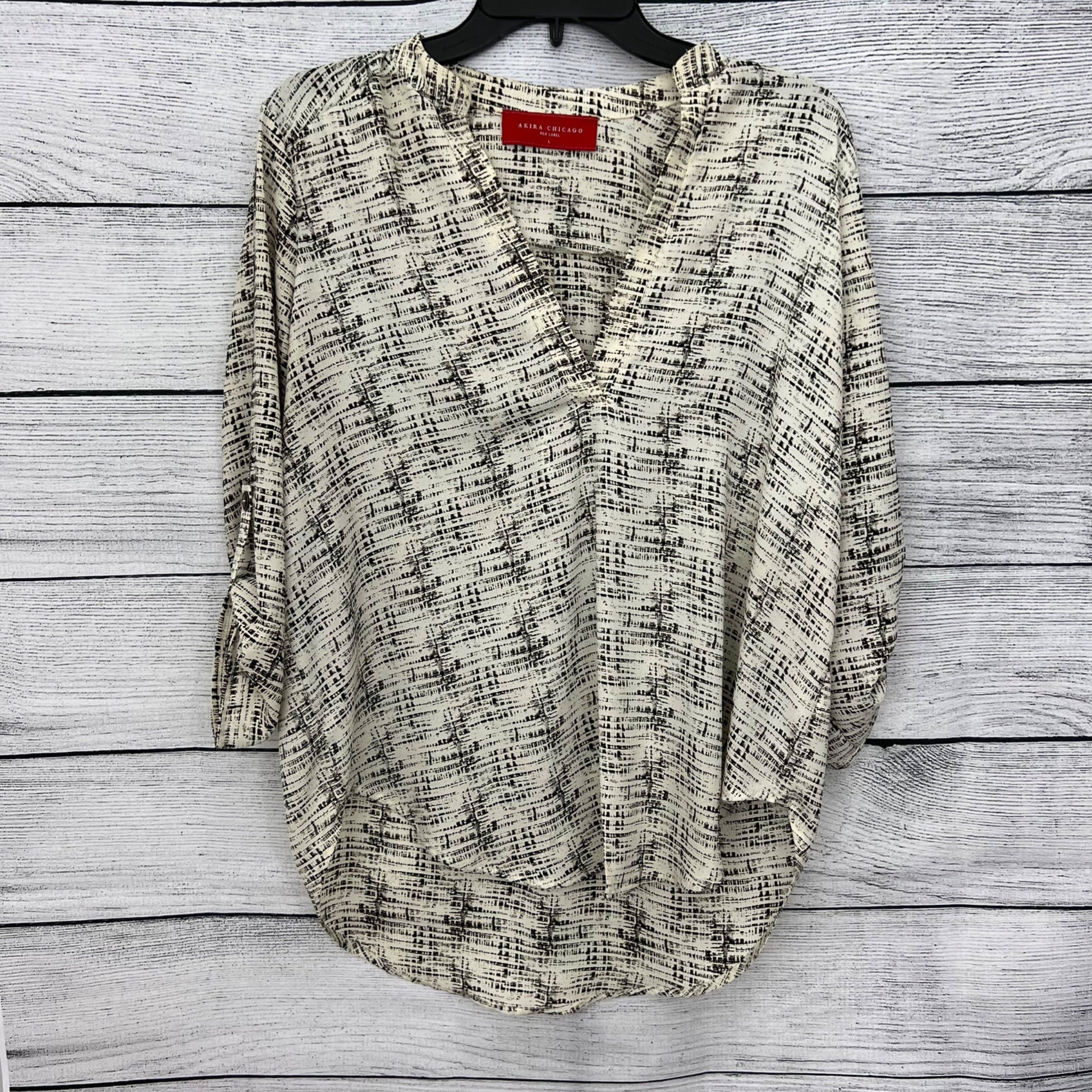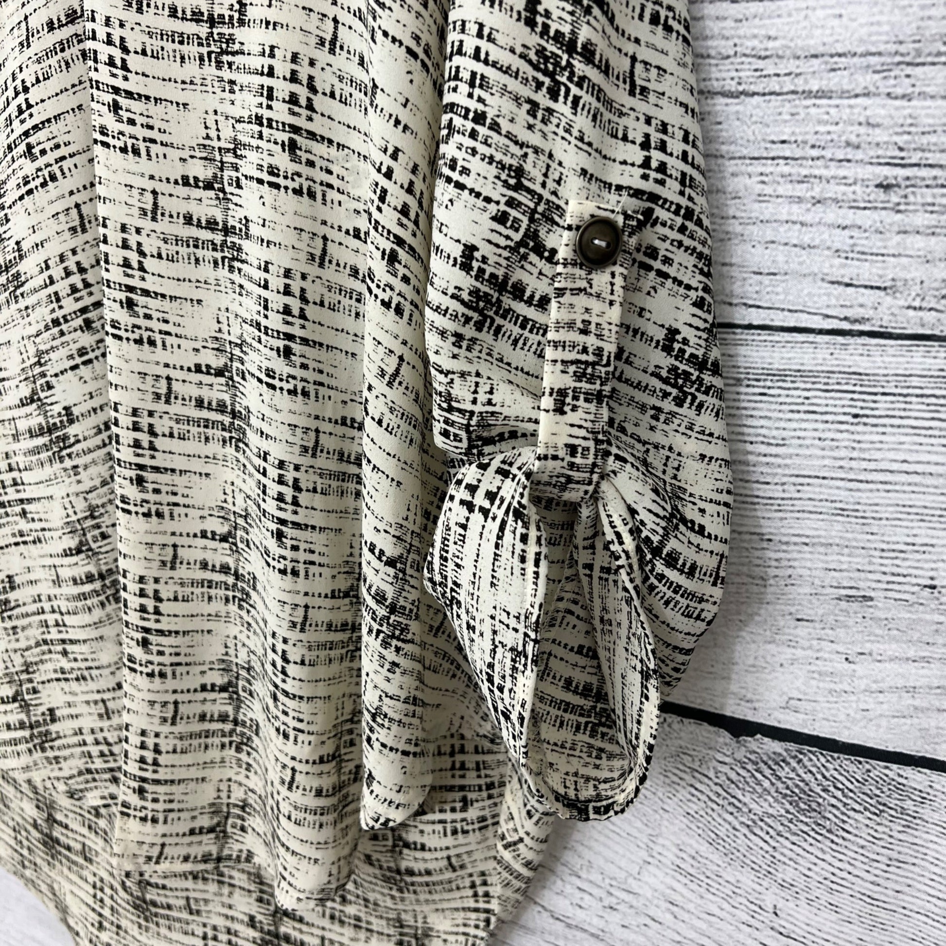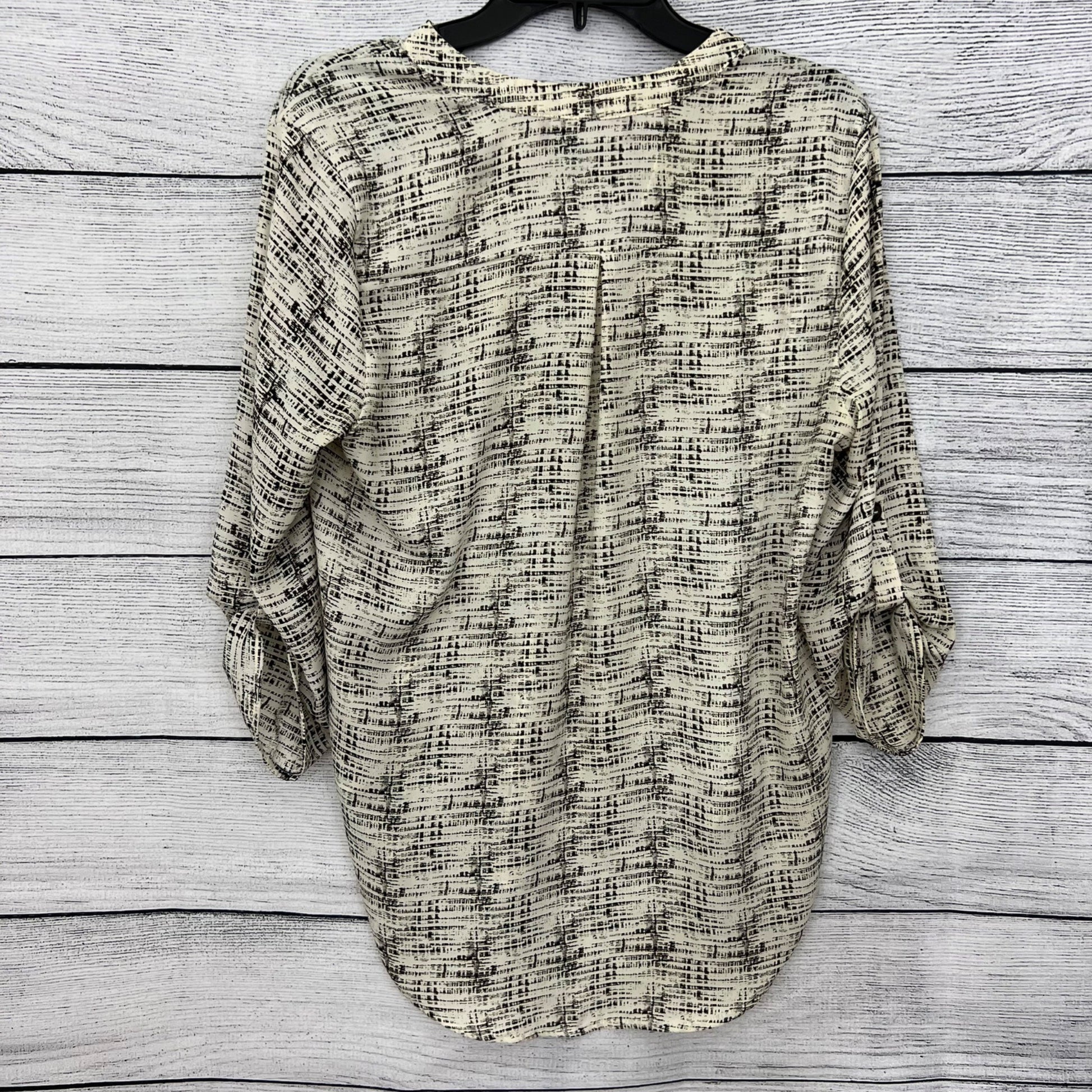Akira V-Neck Blouse Woven 3/4 Sleeve Button Cuff Textured Print Loose Fit, Size M