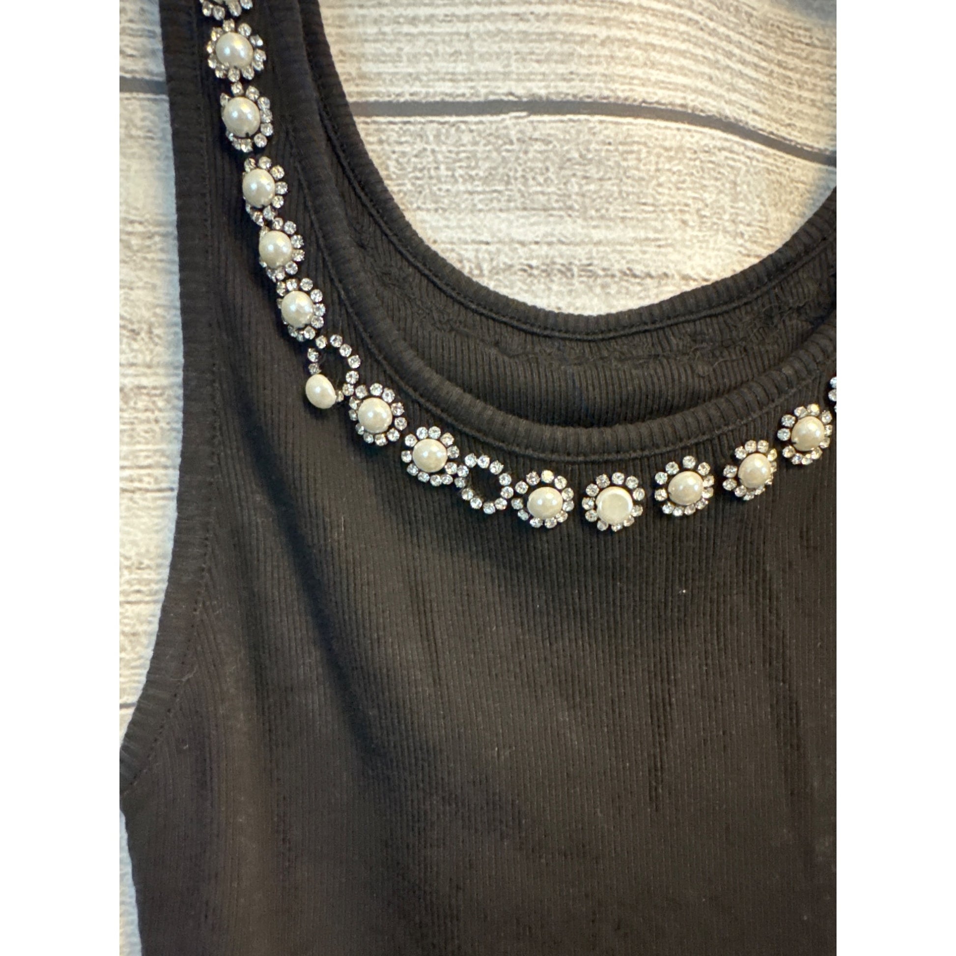 Alice + Olivia Kori Pearl Embellished Ribbed Tank Tops Size S