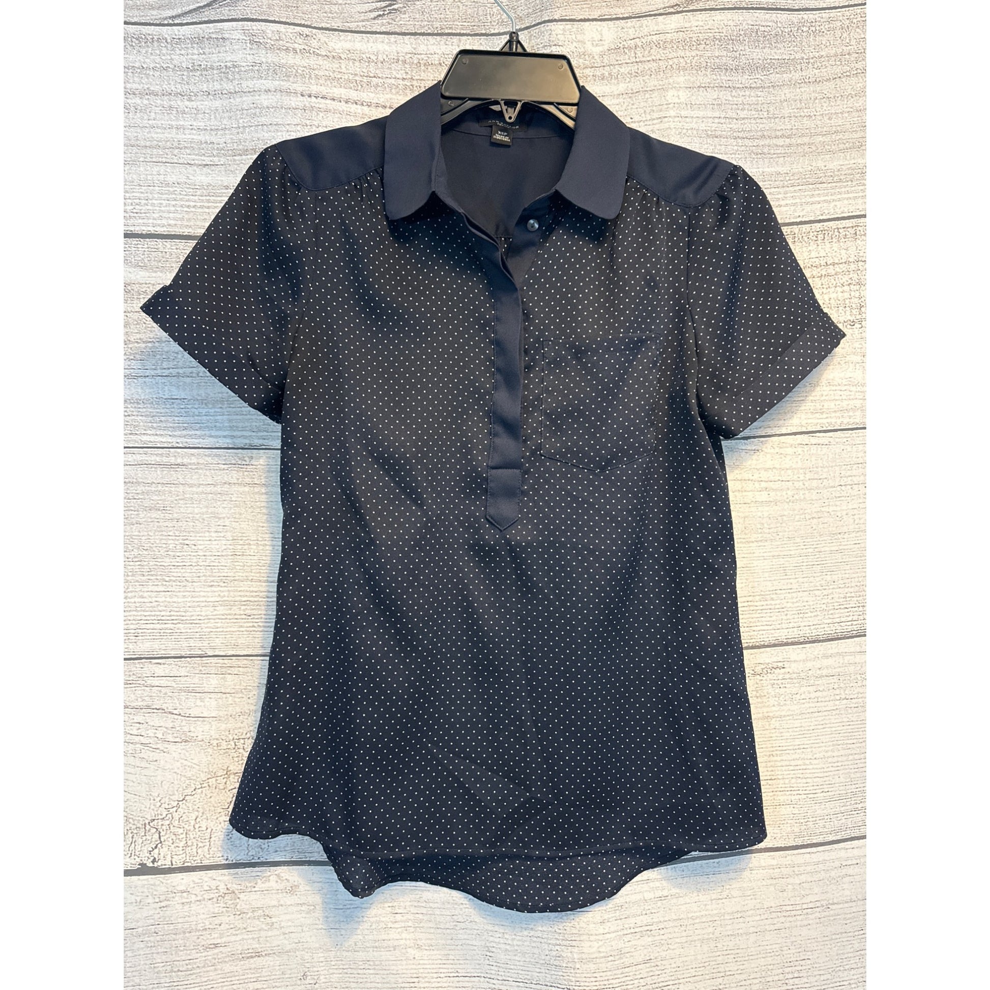 Ann Taylor Navy Polka Dot Short Sleeve Blouse XSP