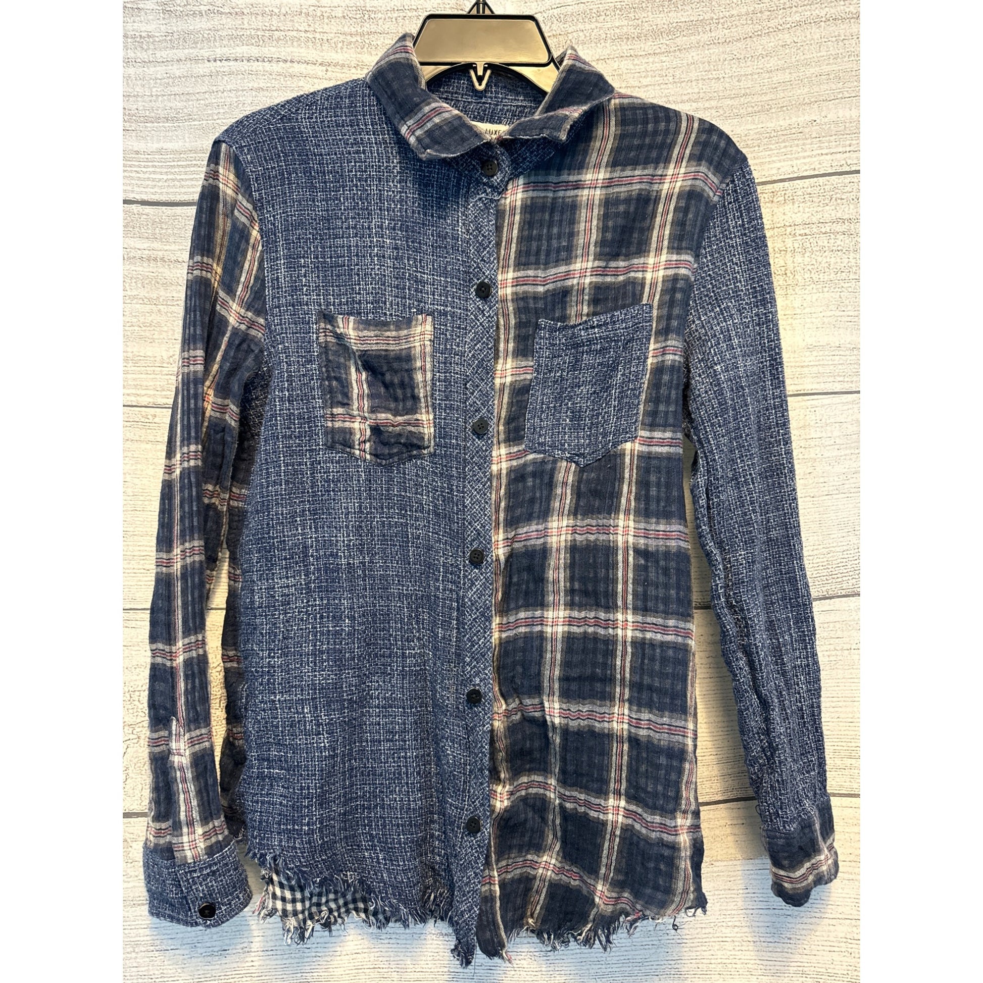 A stylish Artisan De Luxe Blue mixed plaid button-down shirt. Premium quality, lightweight fabric with a classic fit, perfect for casual or semi-formal occasions.