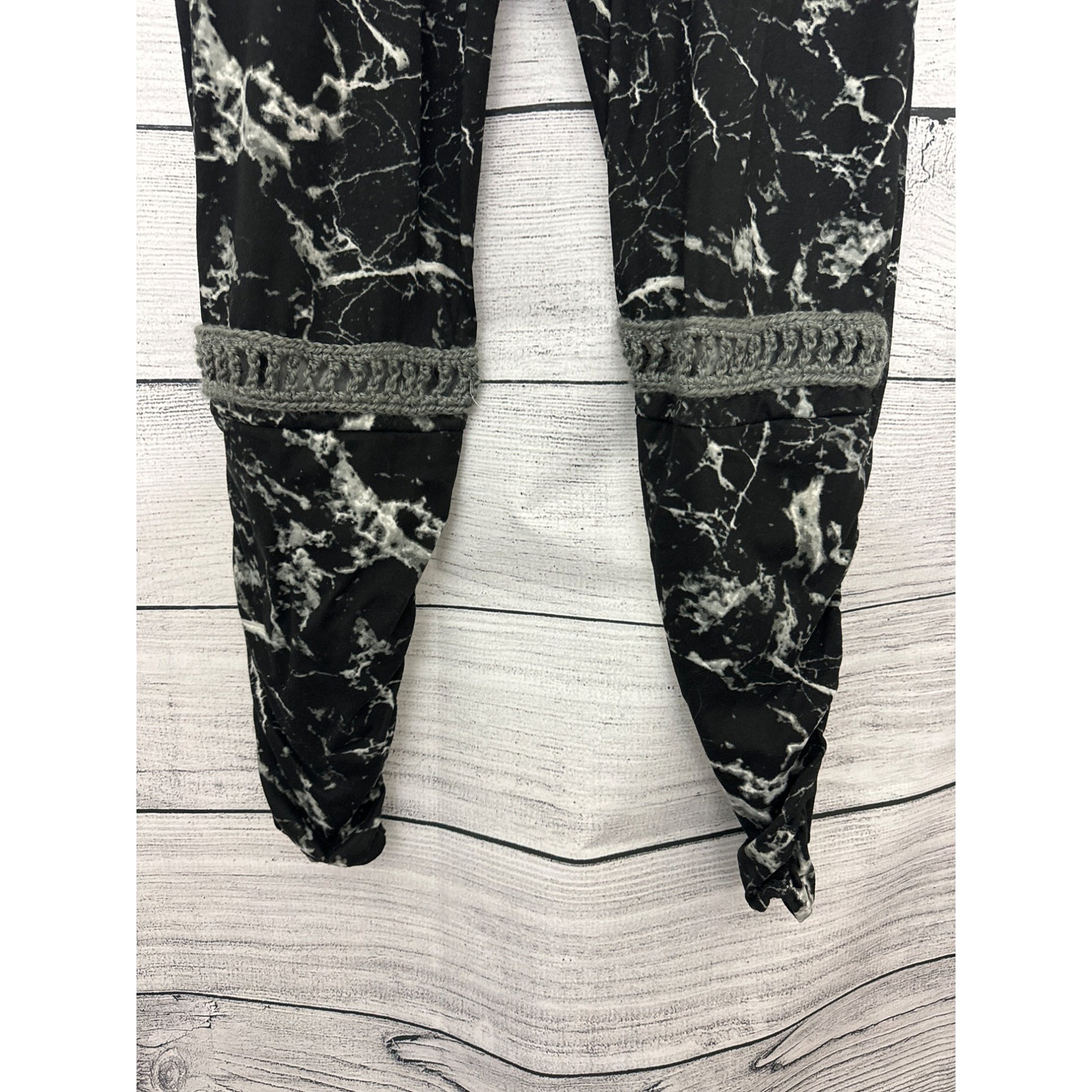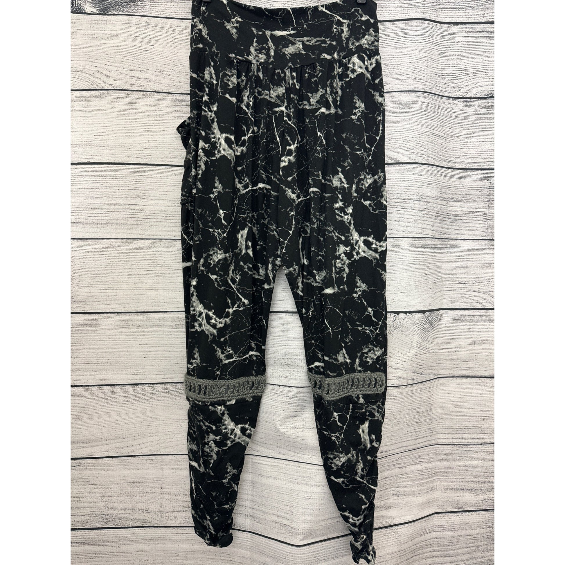 BeMo Designs Black & White Marbled Harem Pants w/ Crochet Detail Size M