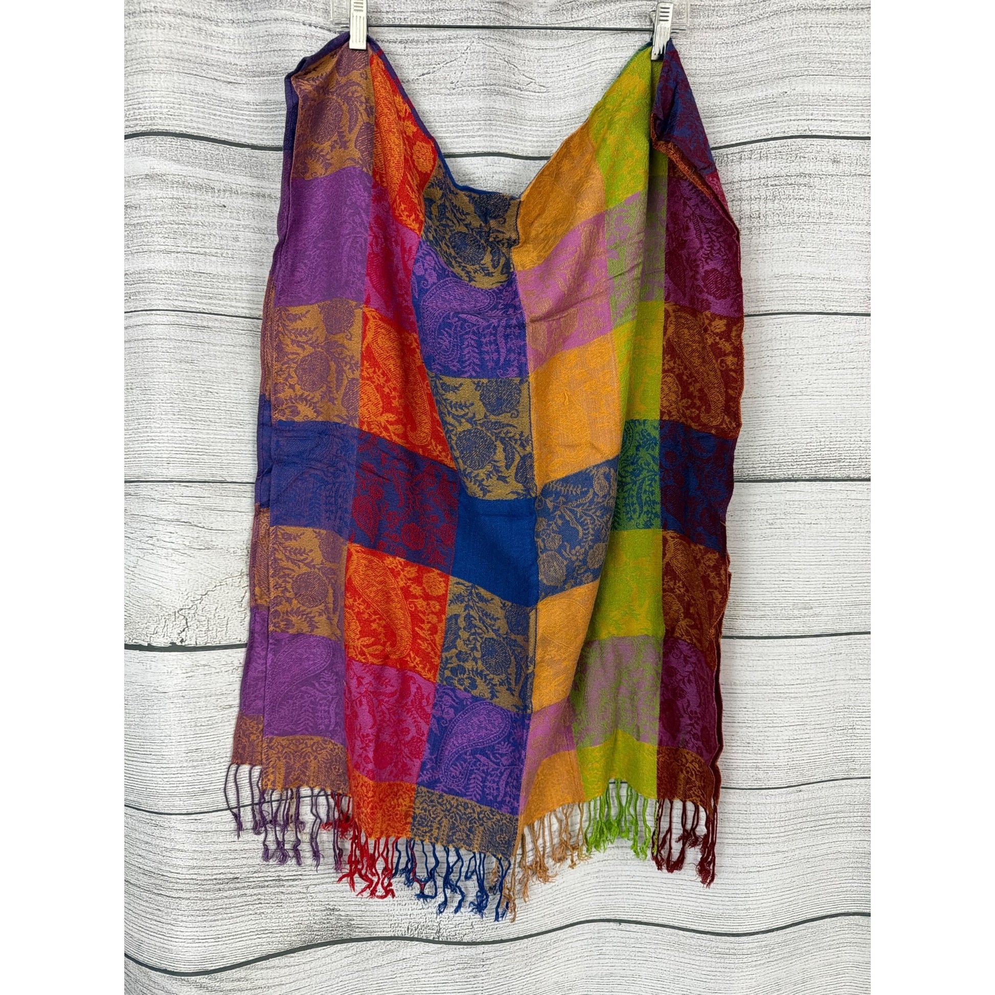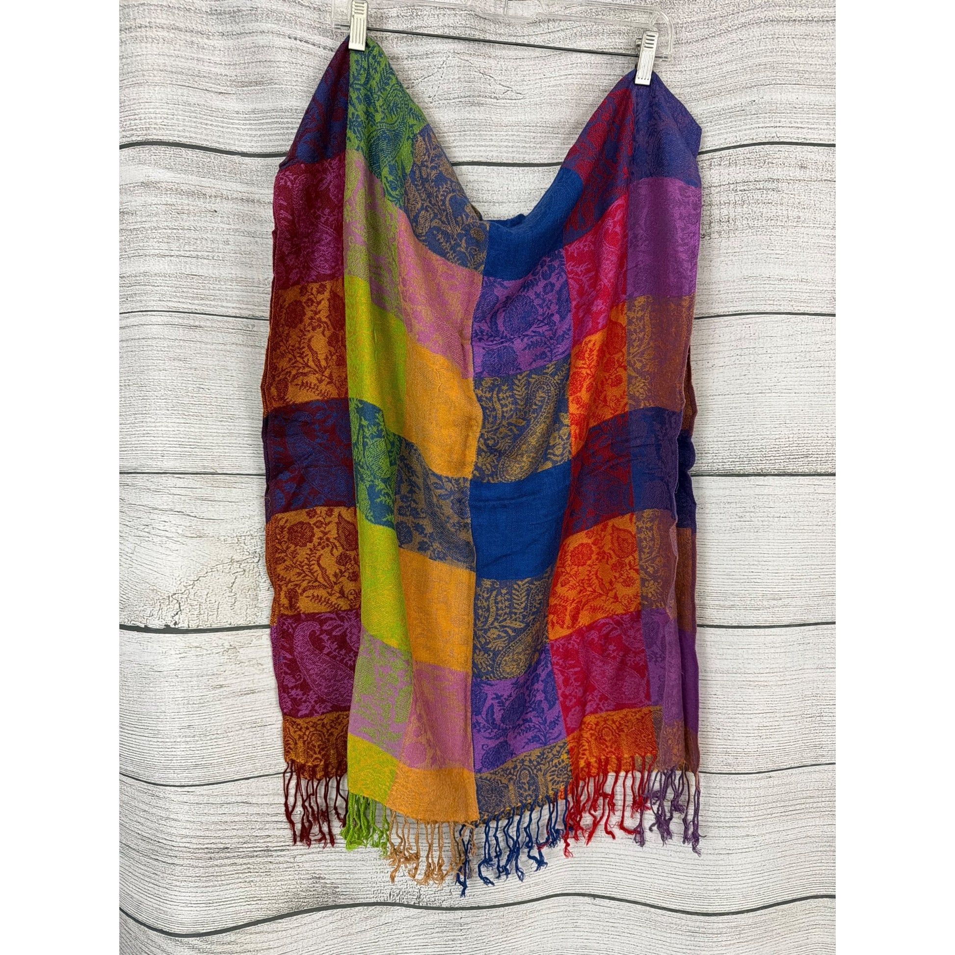 Colorful Patchwork Woven Scarf With Fringe Tassels