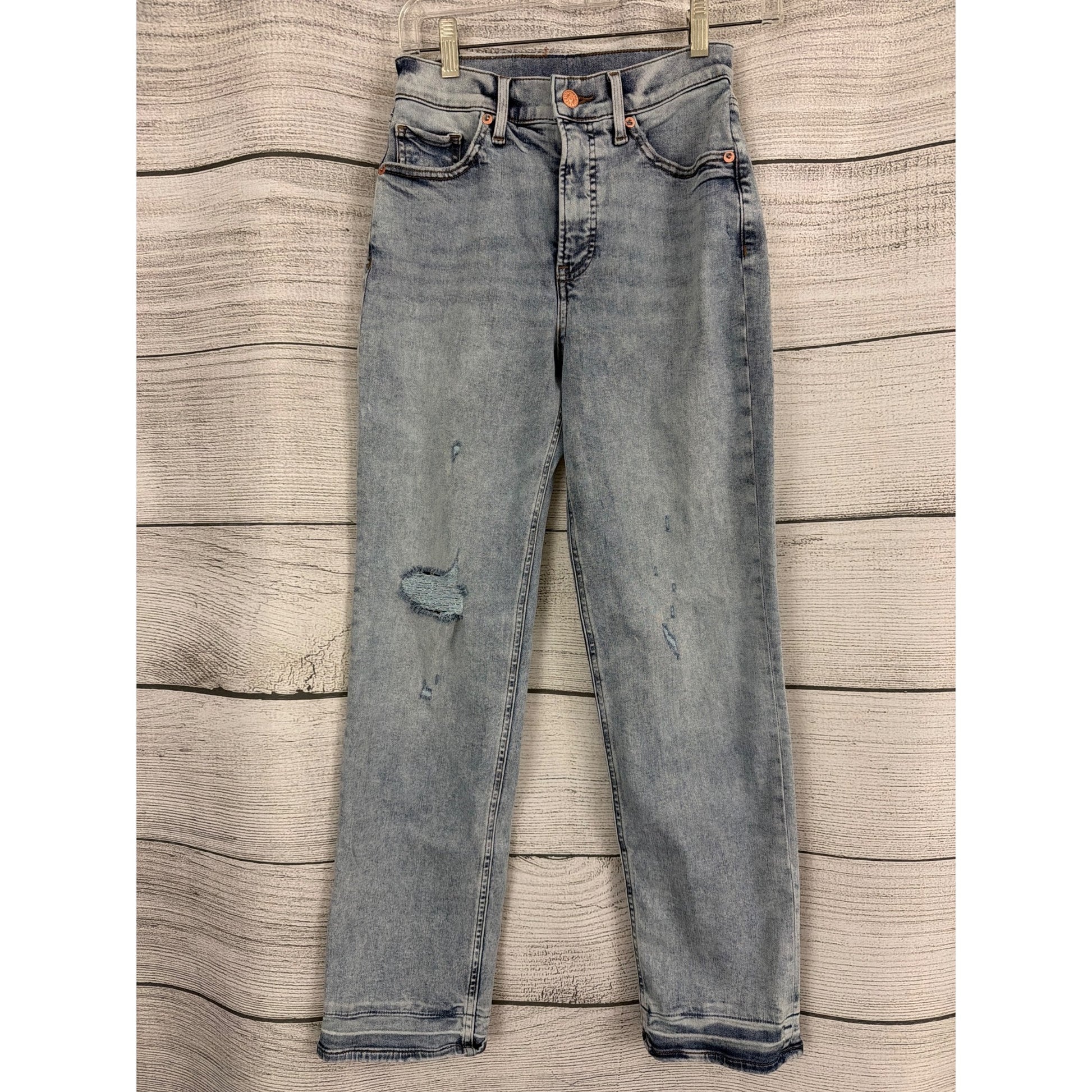 Express High-Rise Modern Straight Jeans Light Wash Distressed 2R