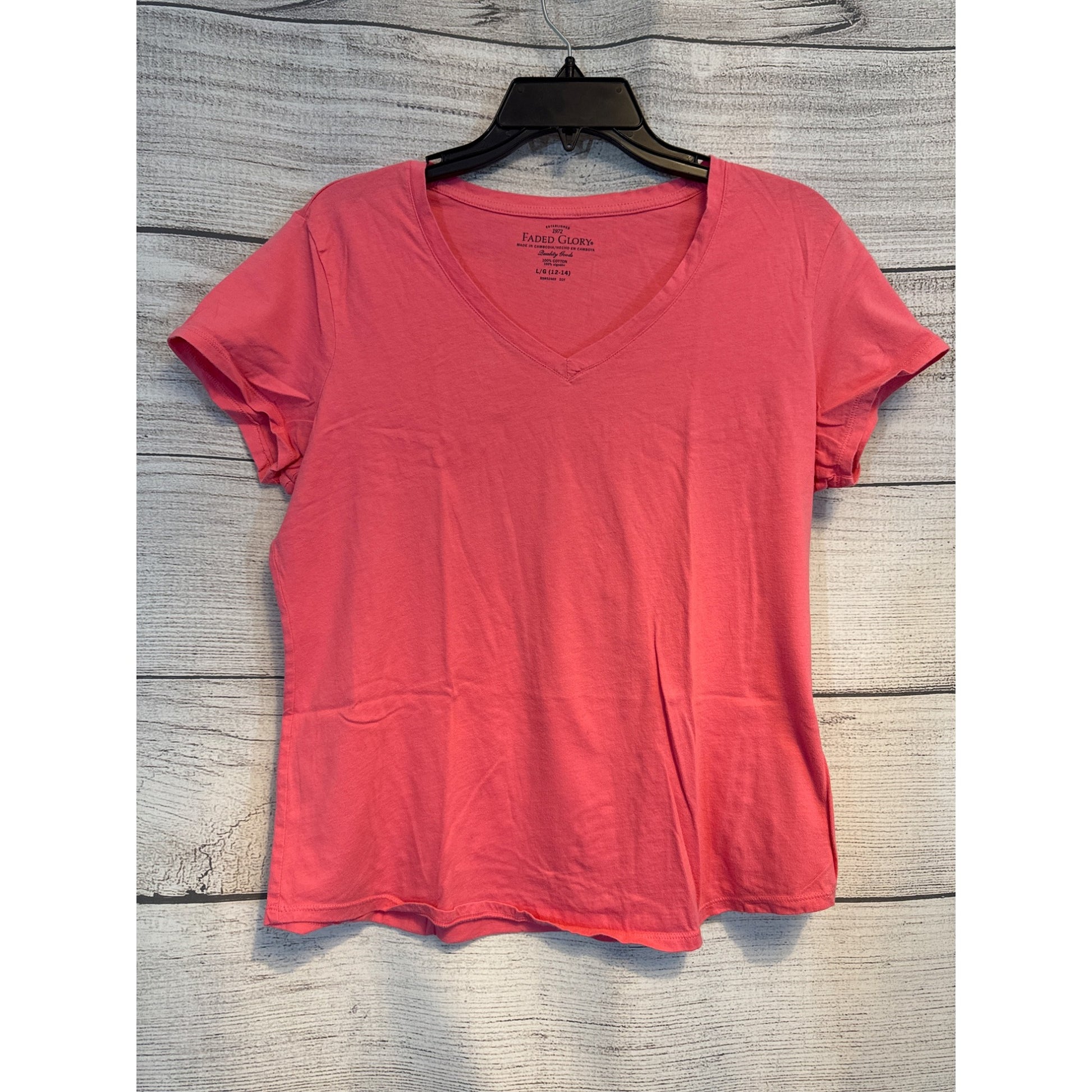 Faded Glory Pink V-Neck T-Shirt Size Large