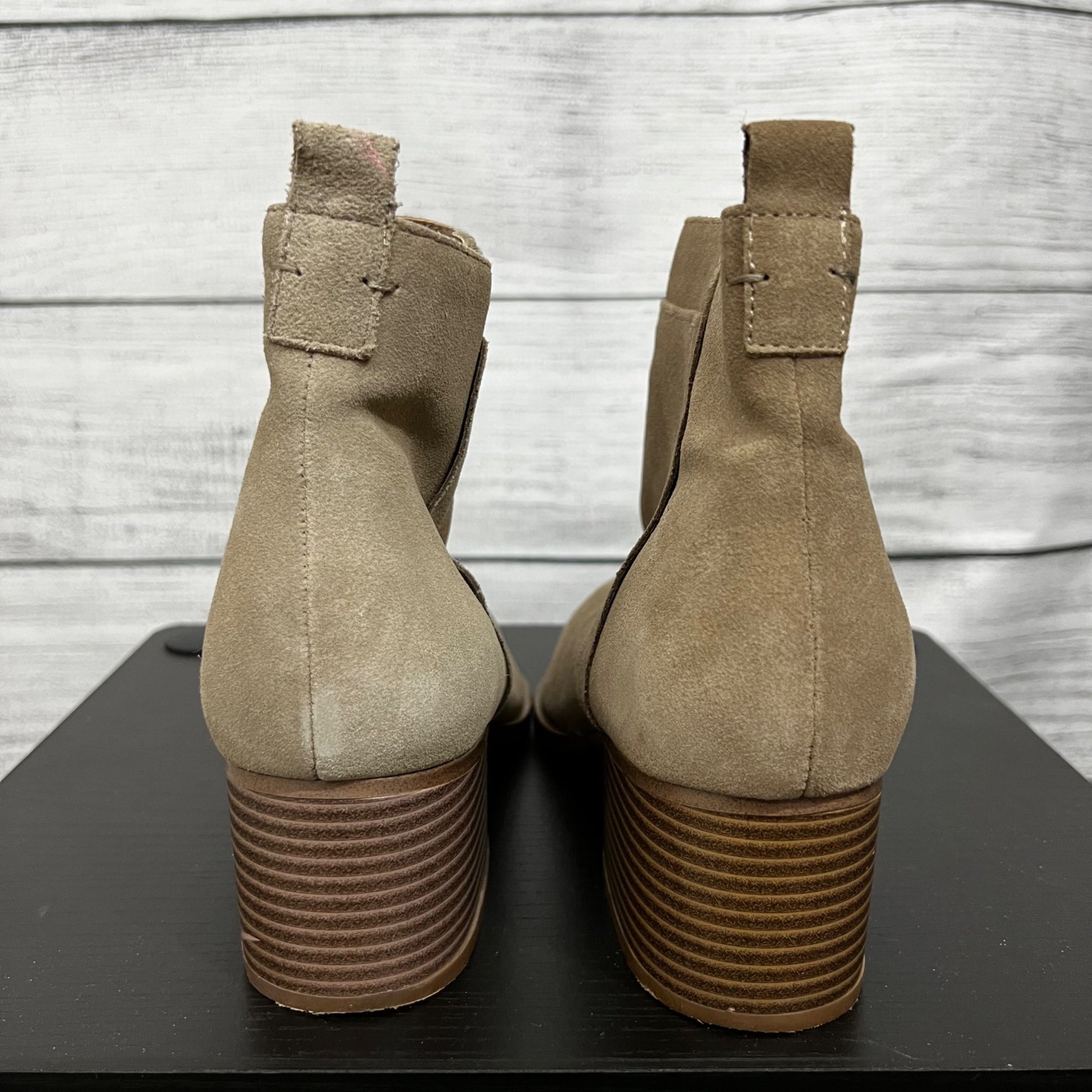 Gap Tan Suede Ankle Boots With Block Heel & Side Zipper, Size 9