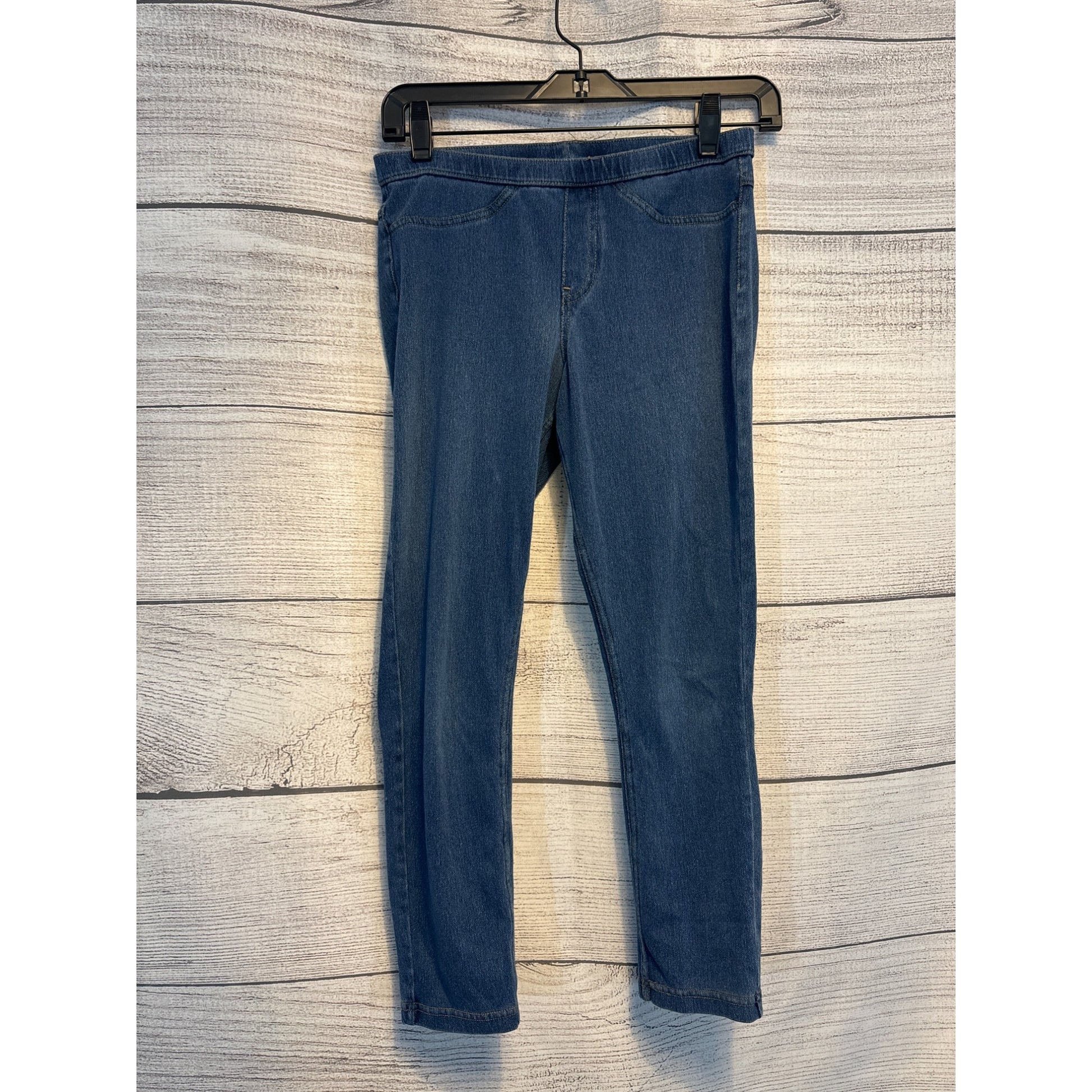 These Hue Blue Denim Leggings/Jeggings are a size small, offering a comfortable and stylish fit. Perfect for casual or dressy occasions, they feature a versatile blue hue and soft, stretchy denim material.
