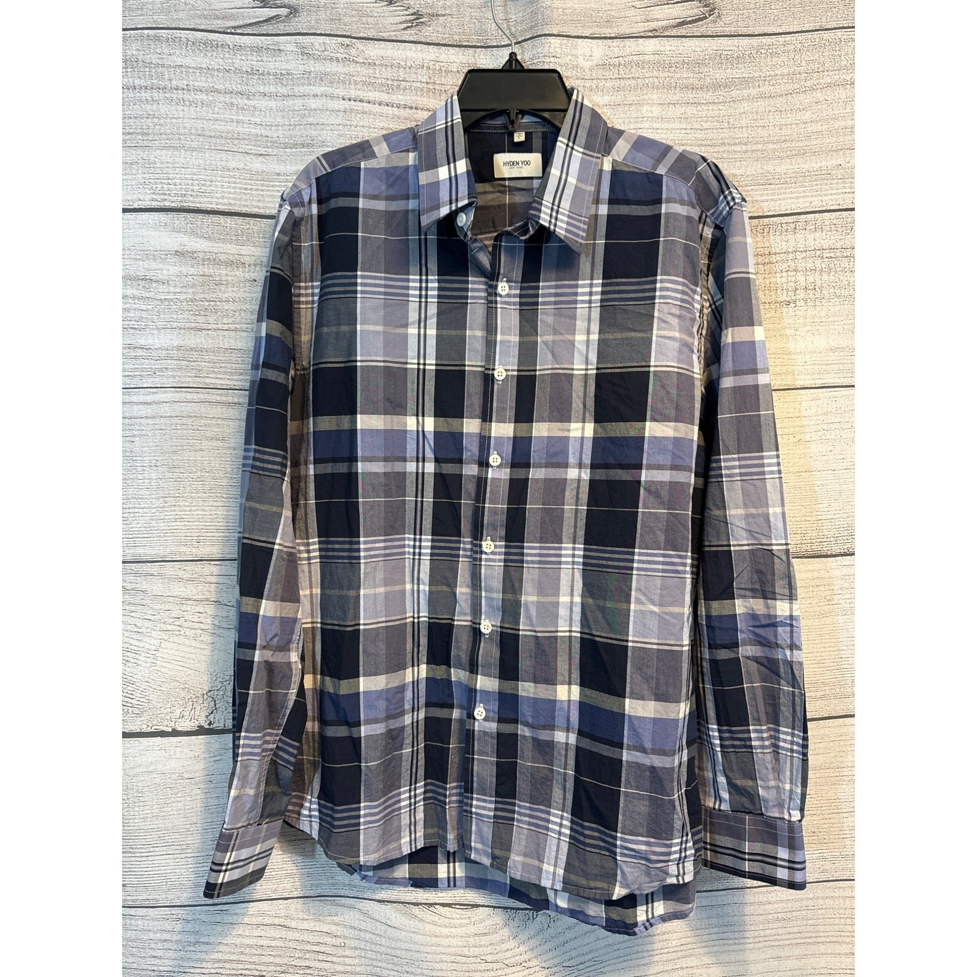 Hyden Yoo Mens Plaid Blue Button down Size L