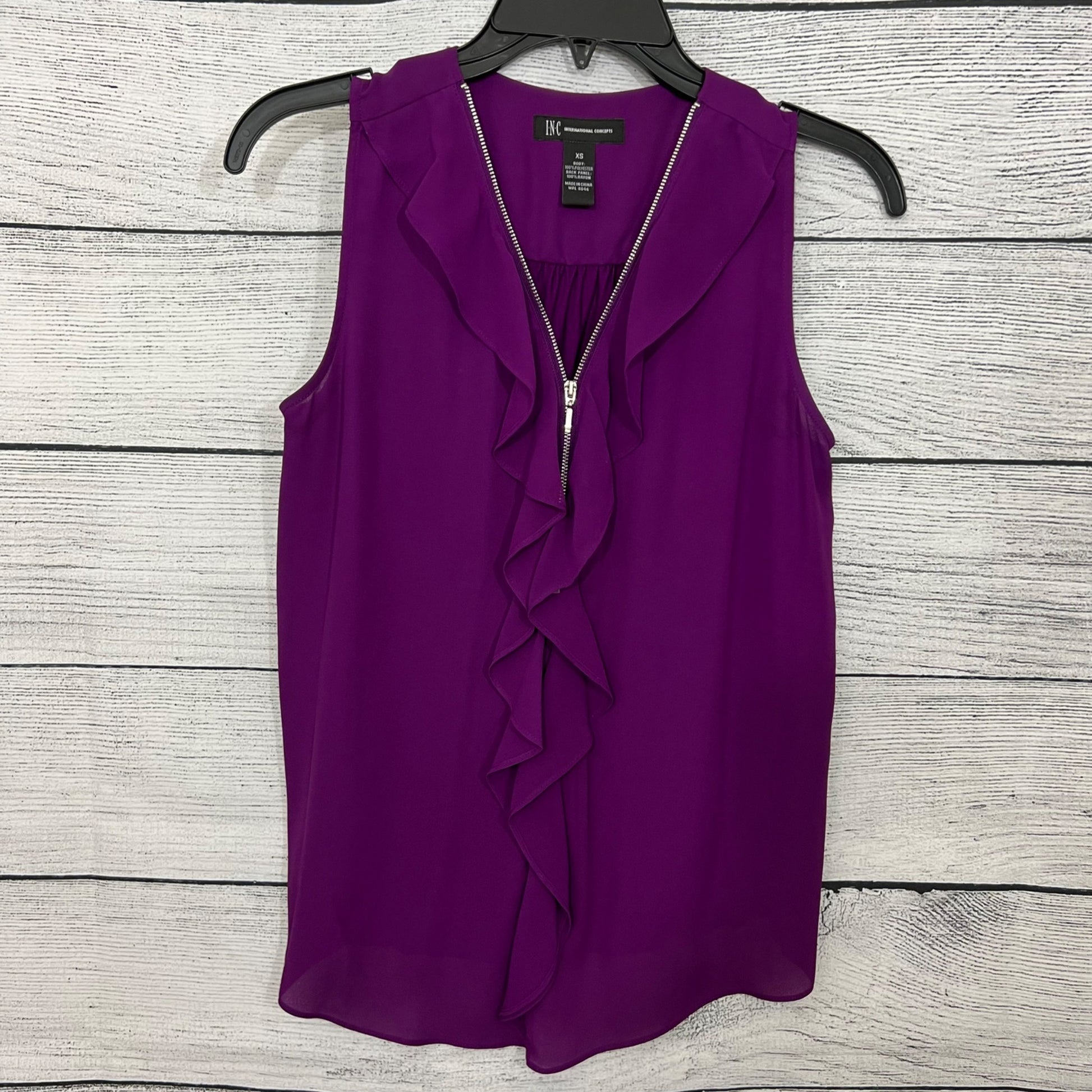 INC Sleeveless Ruffled Purple Blouse With Zipper & Shirred Back, Size XS