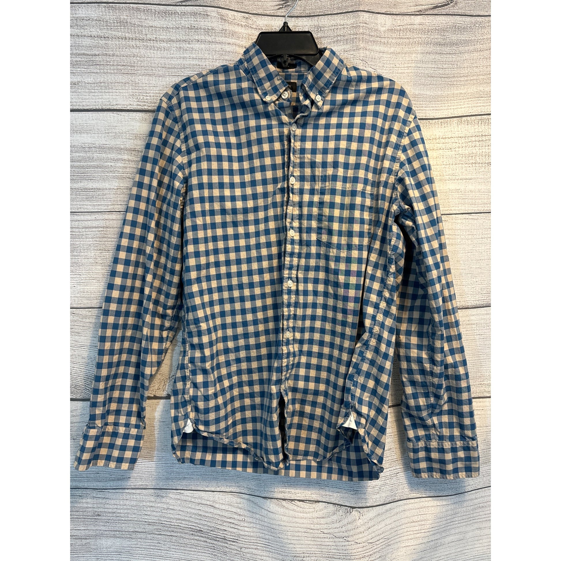 J.Crew Men's Blue & White Gingham Button-Up Shirt M