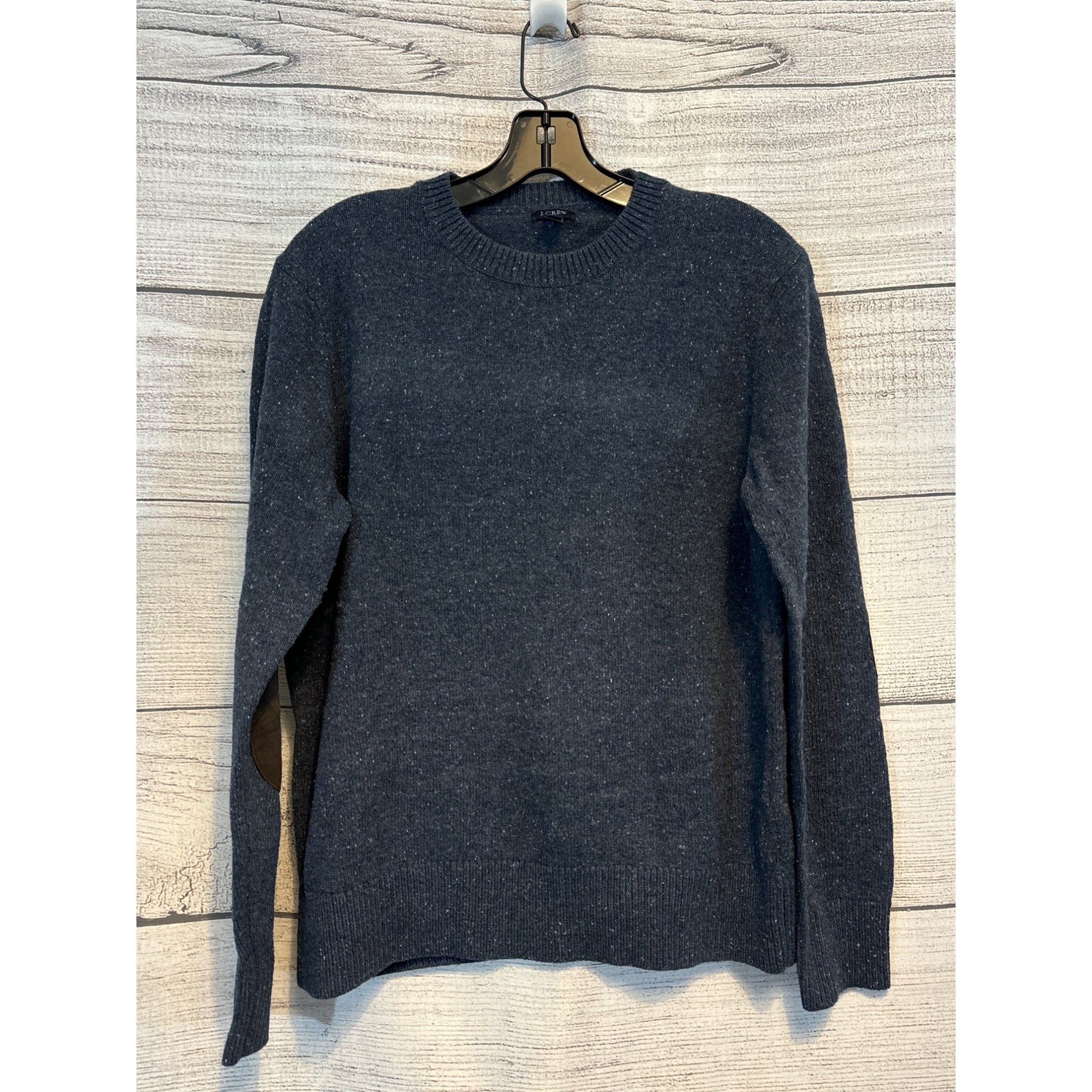 J. Crew Mens Gray Wool Blend Crewneck Sweater With Elbow Patches Size M