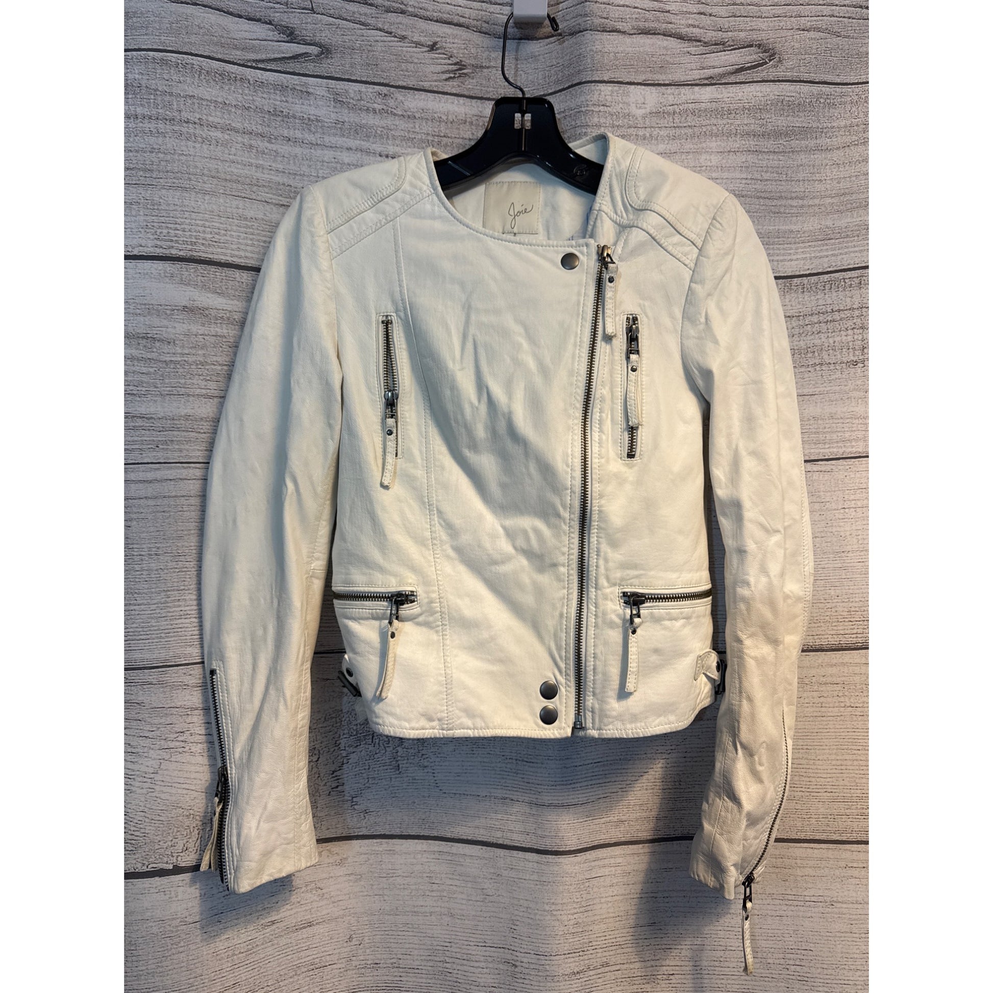 This Joie jacket is the fashion equivalent of a marshmallow—soft, white, and a little bit edgy. Its zippered pockets and sleek design make it ideal for effortlessly adding a touch of class to your ensemble. Just don't wear it near anything chocolatey.