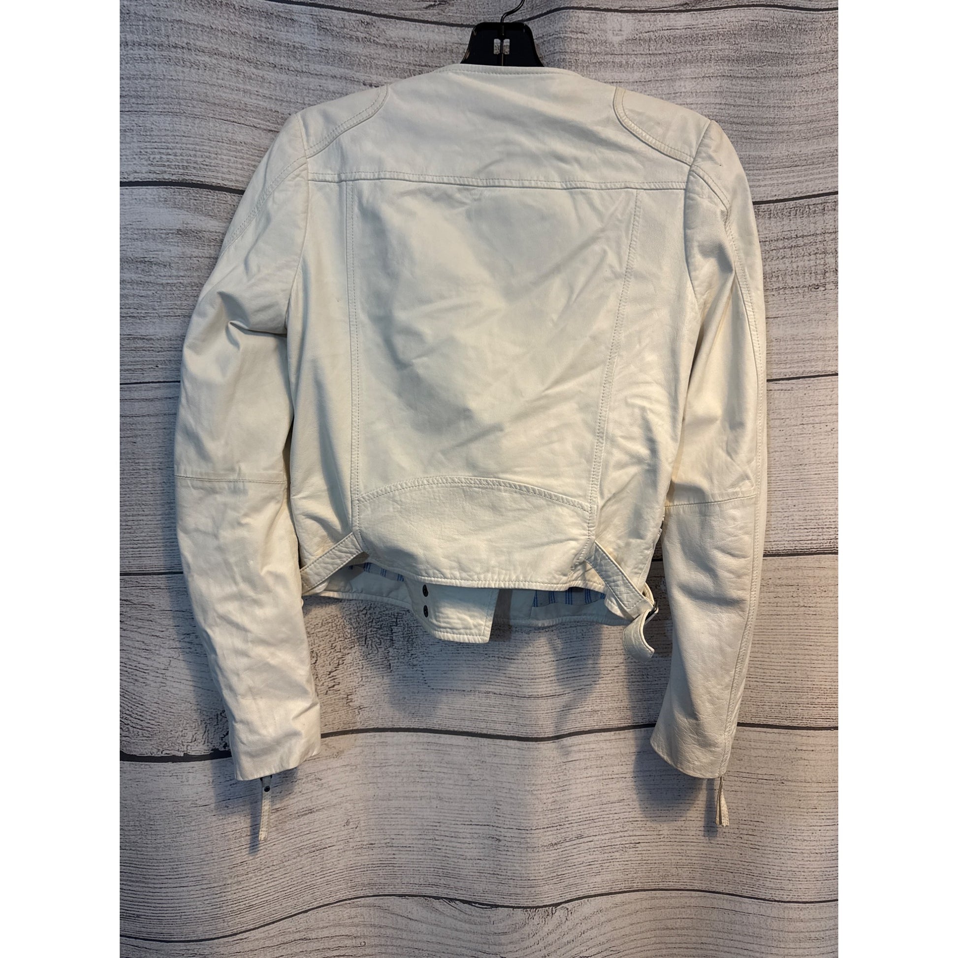 Joie White Lamb Leather Zip Front Moto Jacket XS