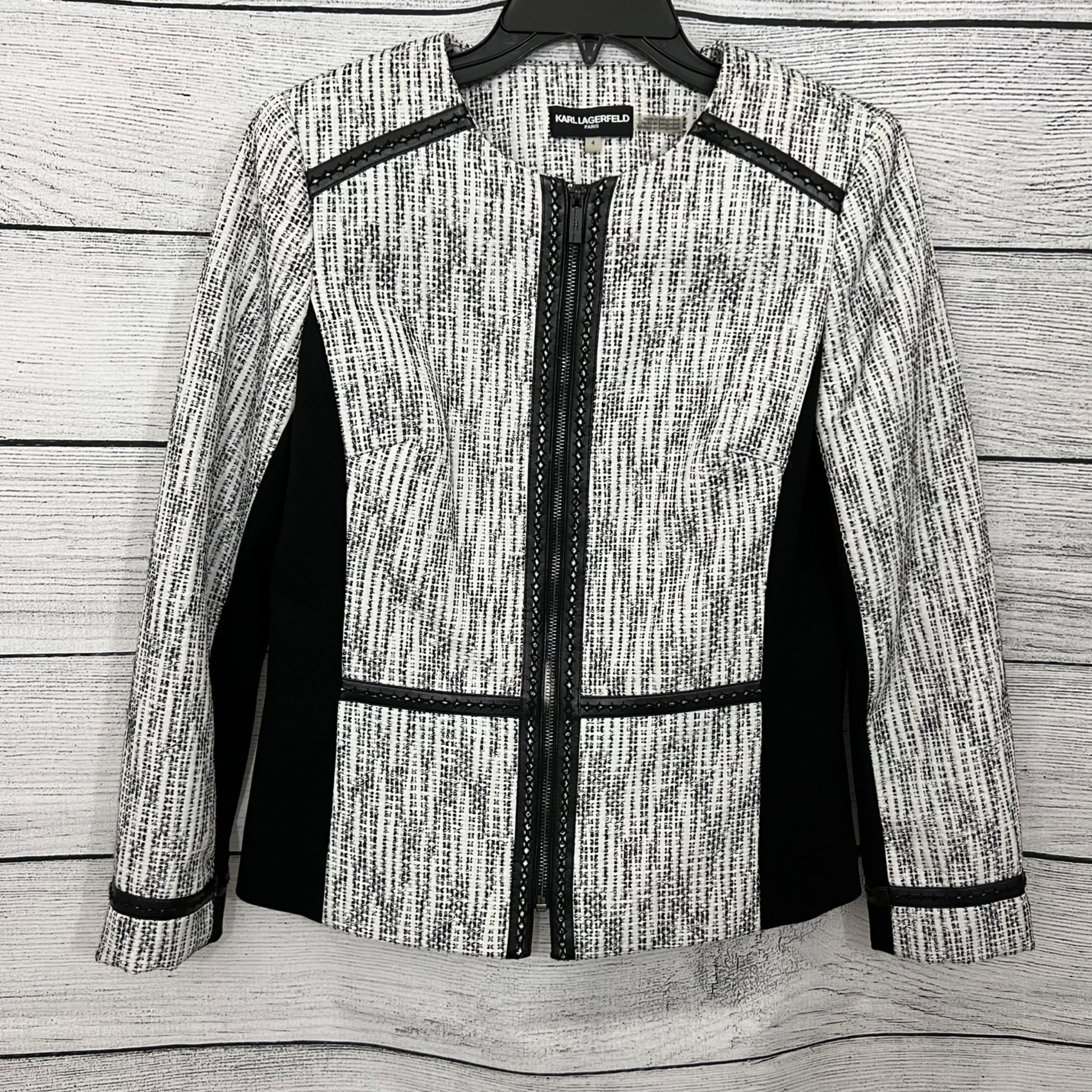 Karl Lagerfeld Tweed Zip Front Jacket, Size Small