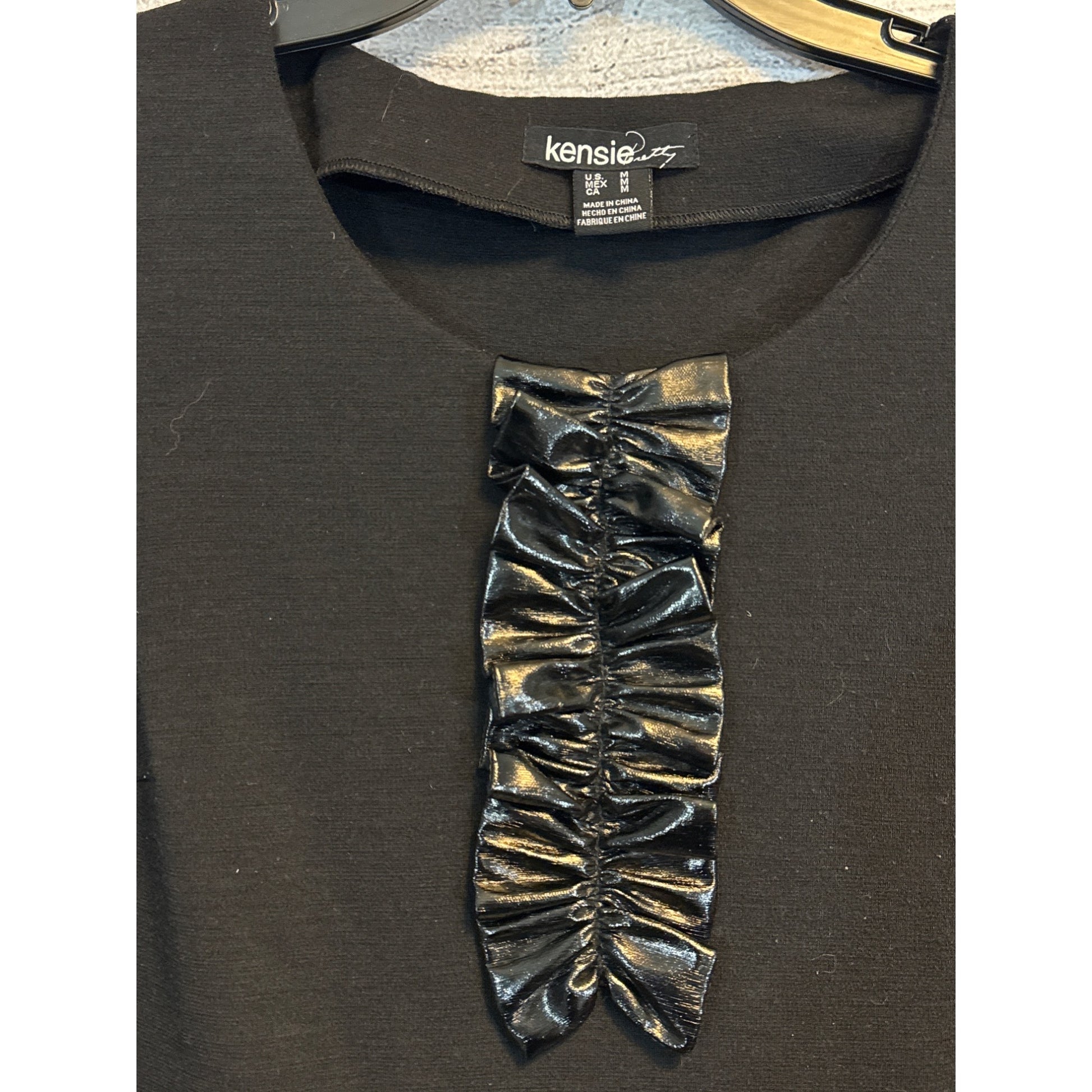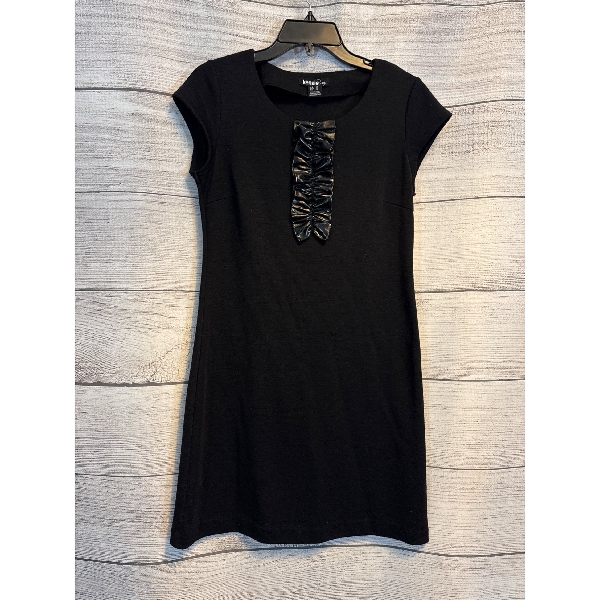 Kensie Party Little Black Dress With Faux Leather Ruched Detai Size M