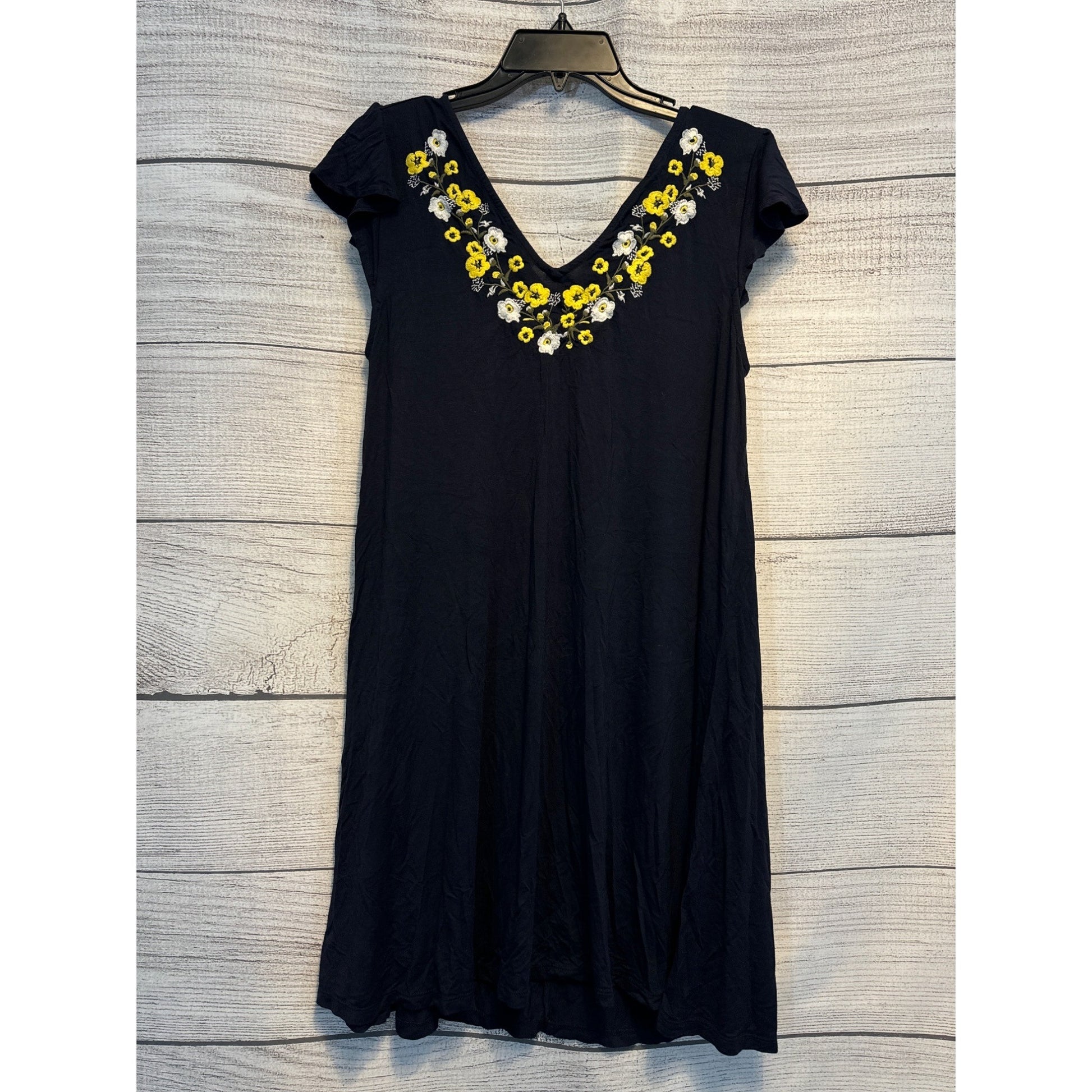 This LOFT Embroidered Flutter Swing Dress Size S is a stylish choice for any occasion. The embroidery adds a chic touch to this comfortable, loose-fitting dress.