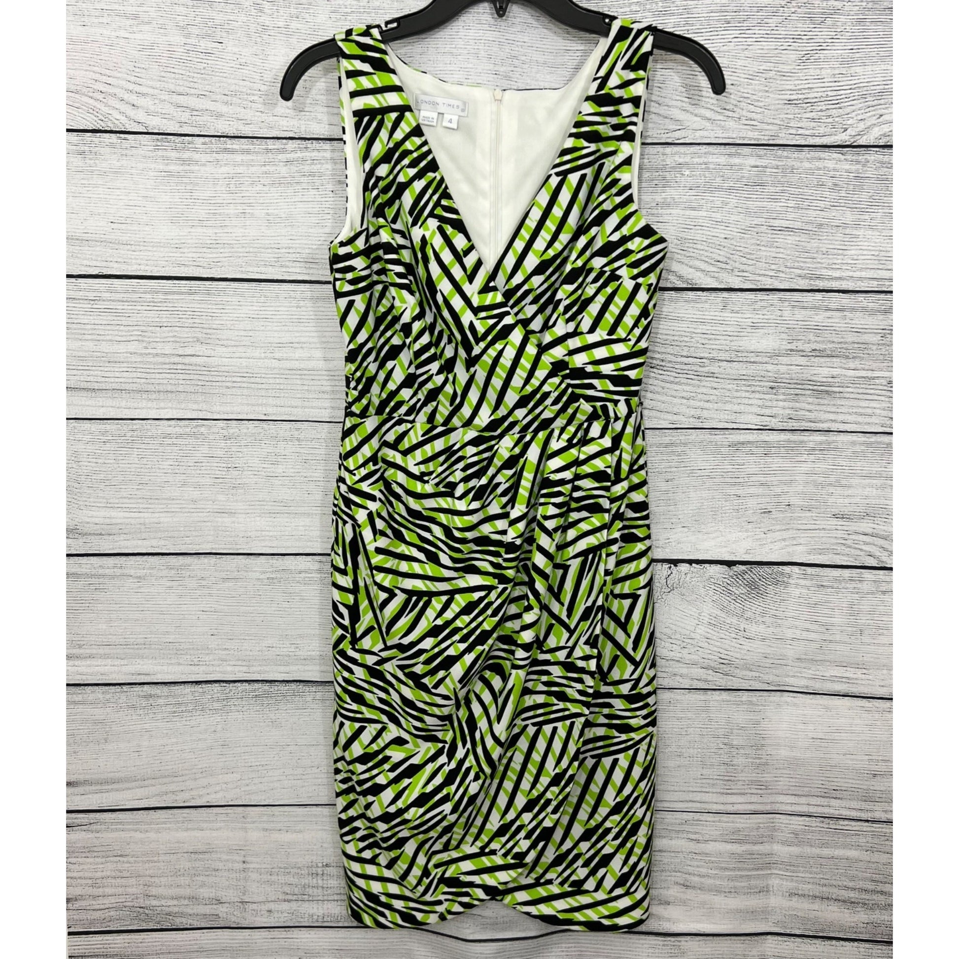 London Times Sleeveless Sheath Dress With Geometric Print, Size 4