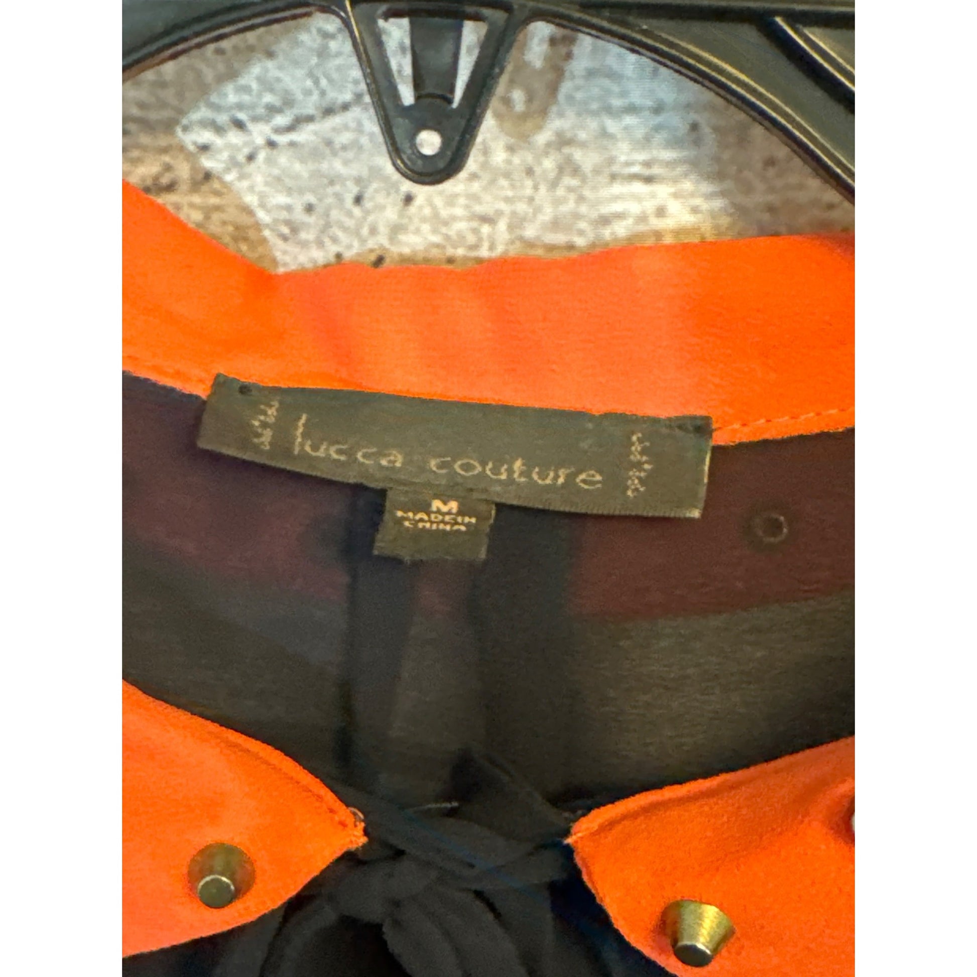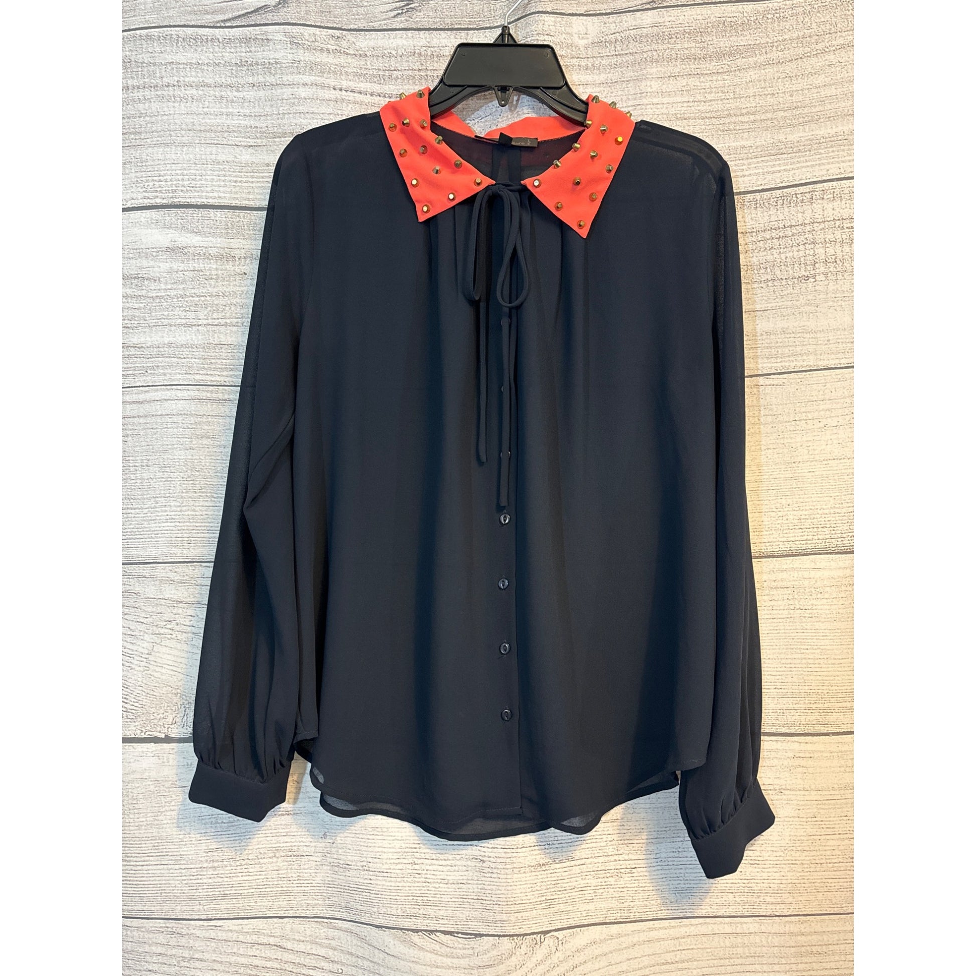 This blouse is like a spicy secret agent—understated in black but ready to make a statement with its red studded collar flair. It’s the kind of top that says, “I mean business, but I’m also here to party... responsibly.”