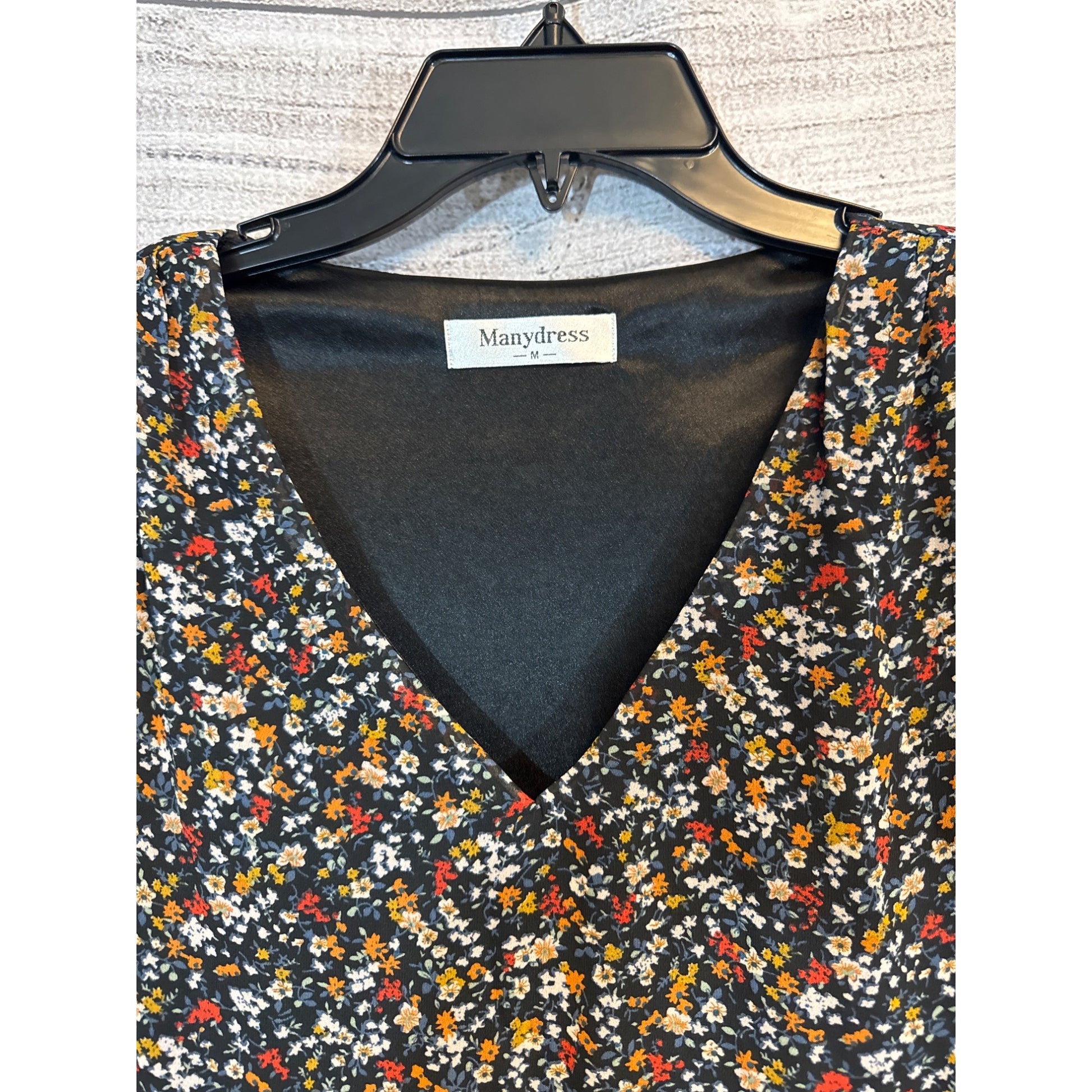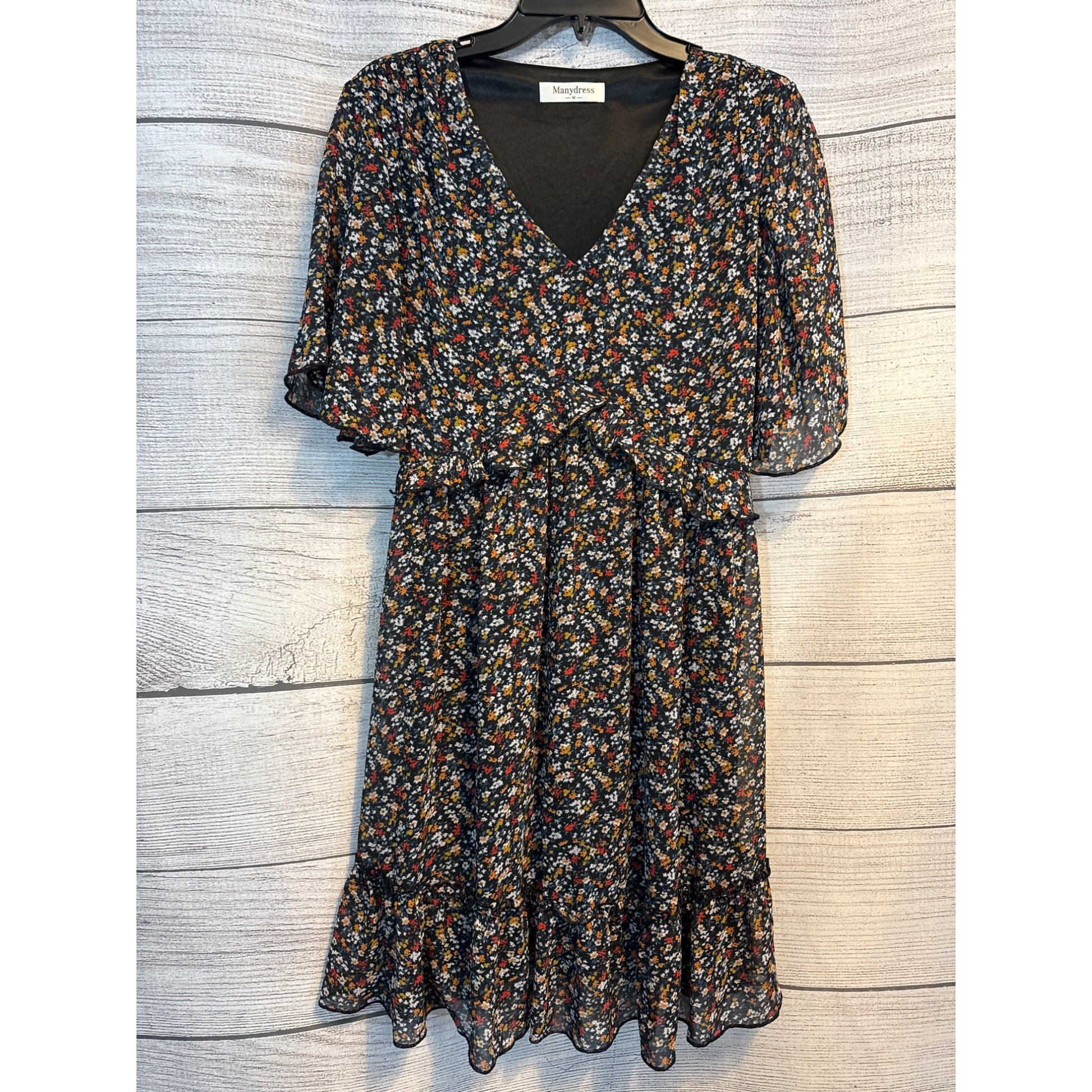 Manydress V Neck Chiffon 3/4 Ruffle Bell Sleeve Dress Size M