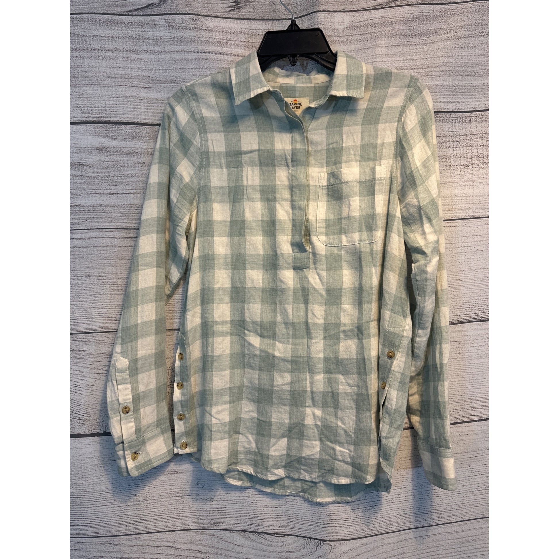 Marine Layer Green Plaid Half Button-Down Shirt Size XS