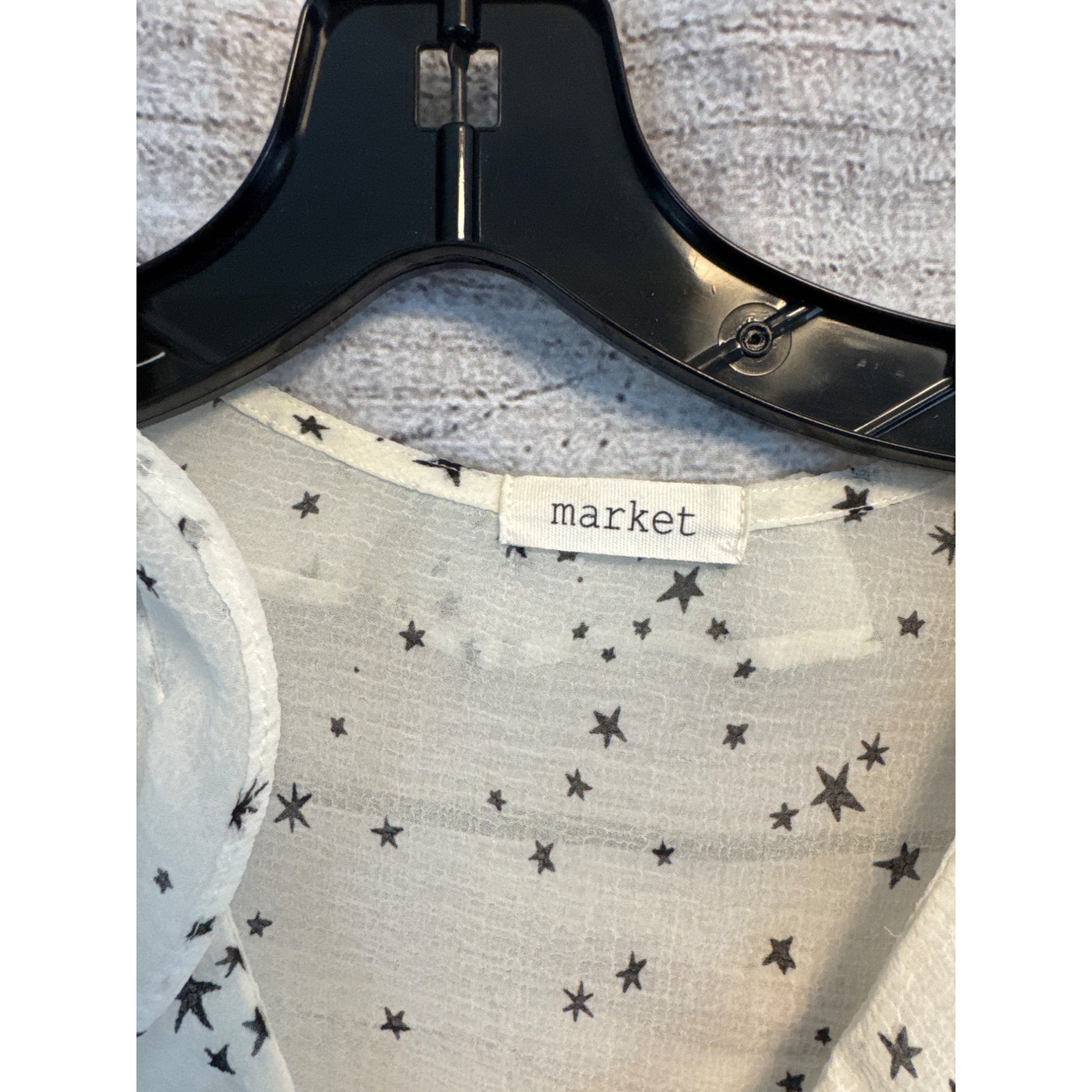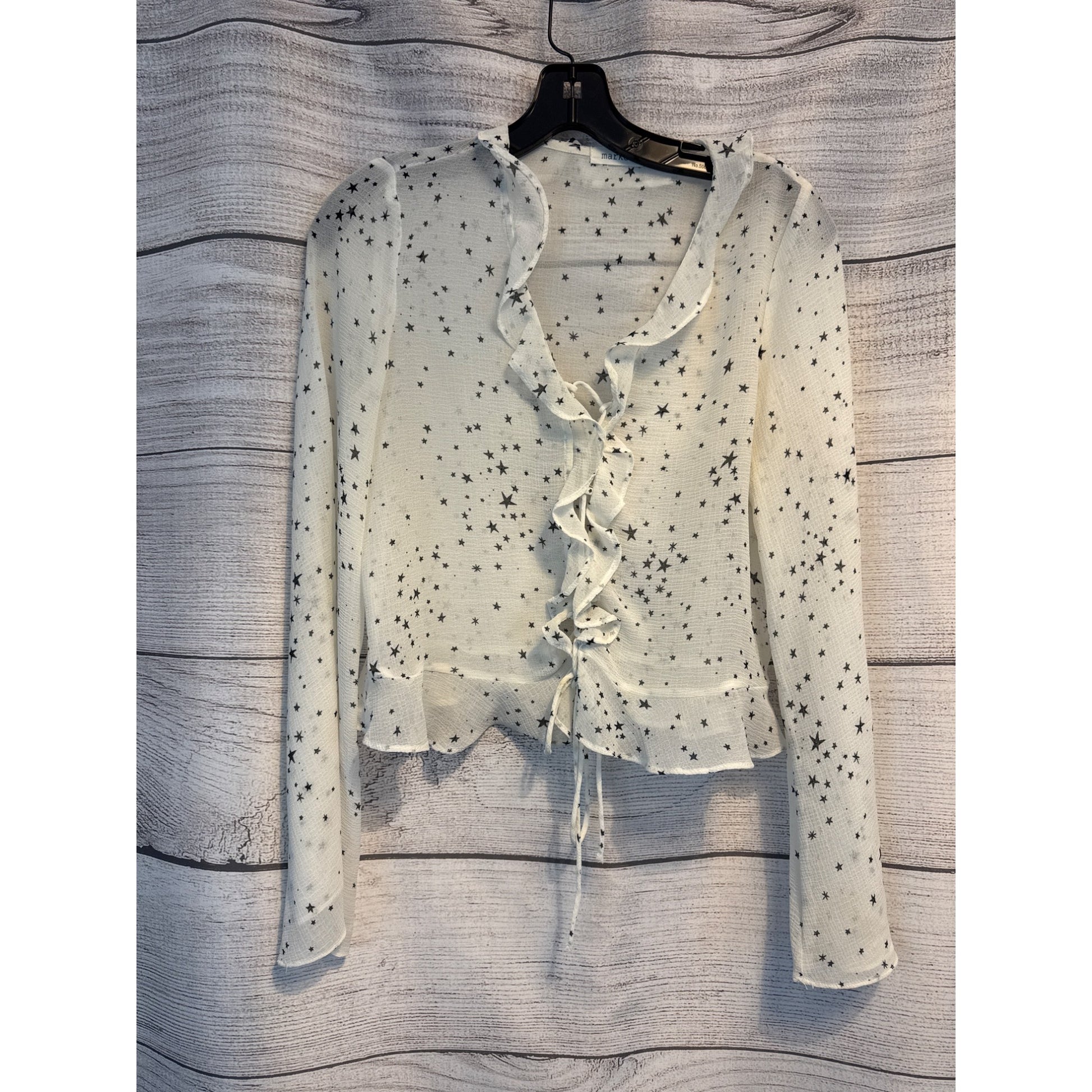 Market Womens Star Print Ruffled Sheer Blouse Size S