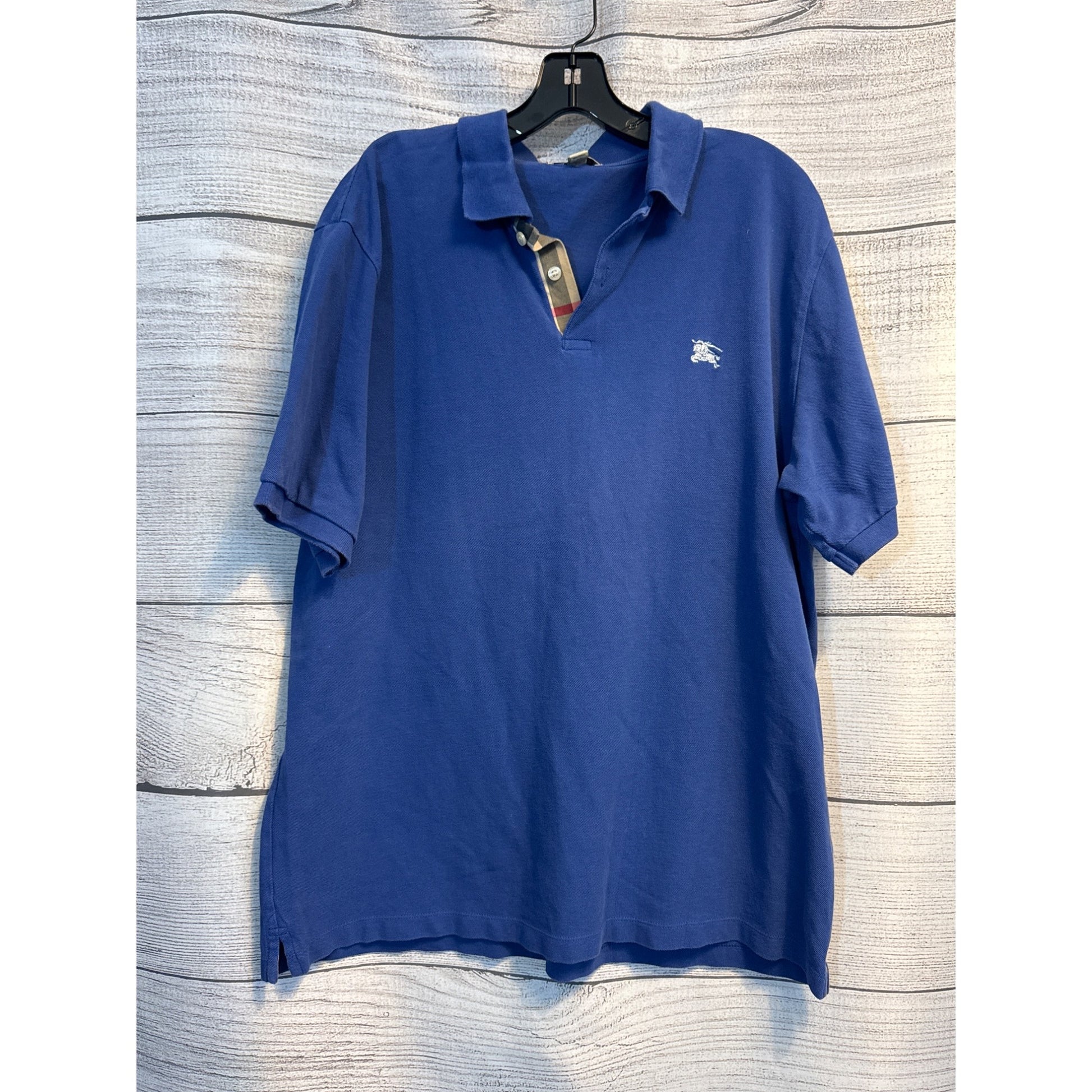 Mens Burberry Blue Polo Shirt With Signature Check Collar Accent Size XXL