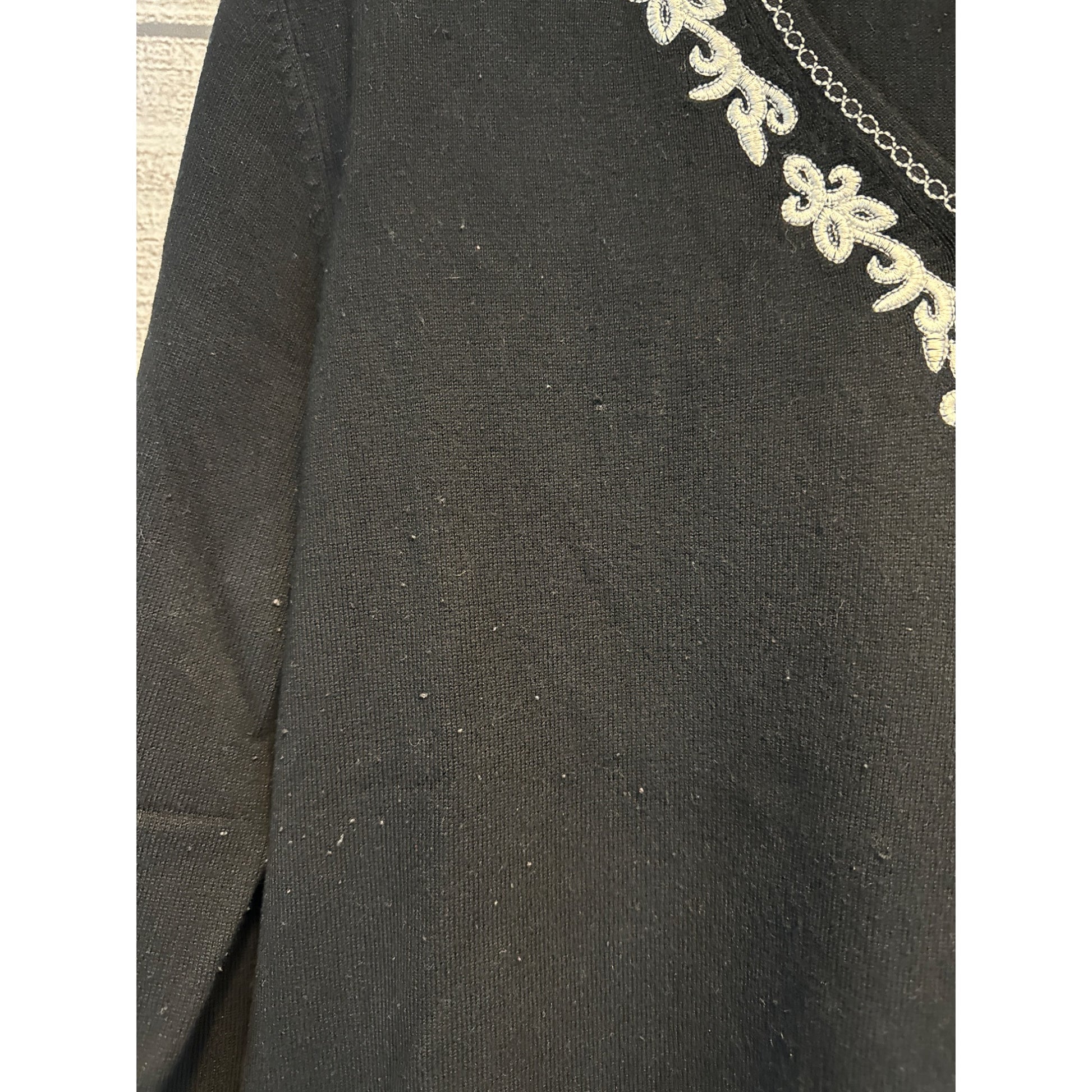 Notations Embellished Black Sweater Top With Silver Trim 3/4 Sleeves Size PM
