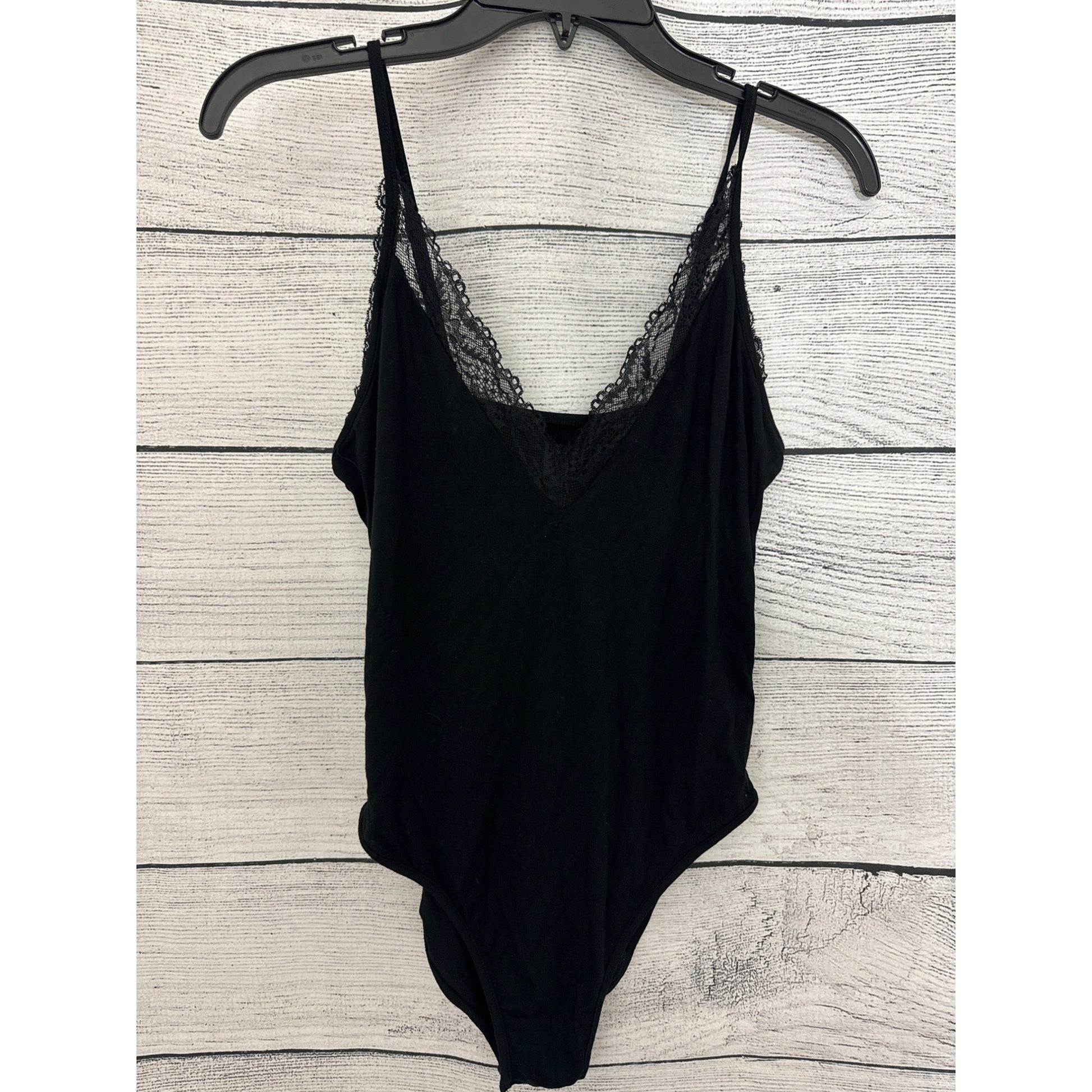 NWOT Black Lace-Trimmed V-Neck Bodysuit Size L