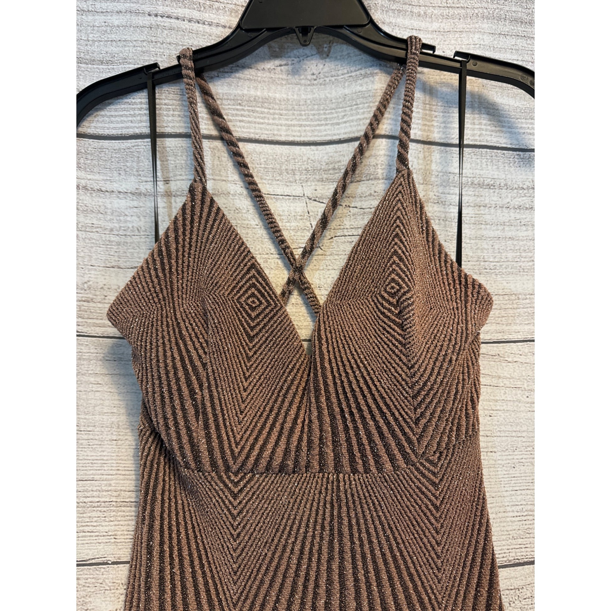 NWT Akira Brown Geometric Bodycon Dress W/ Crisscross Straps Size M