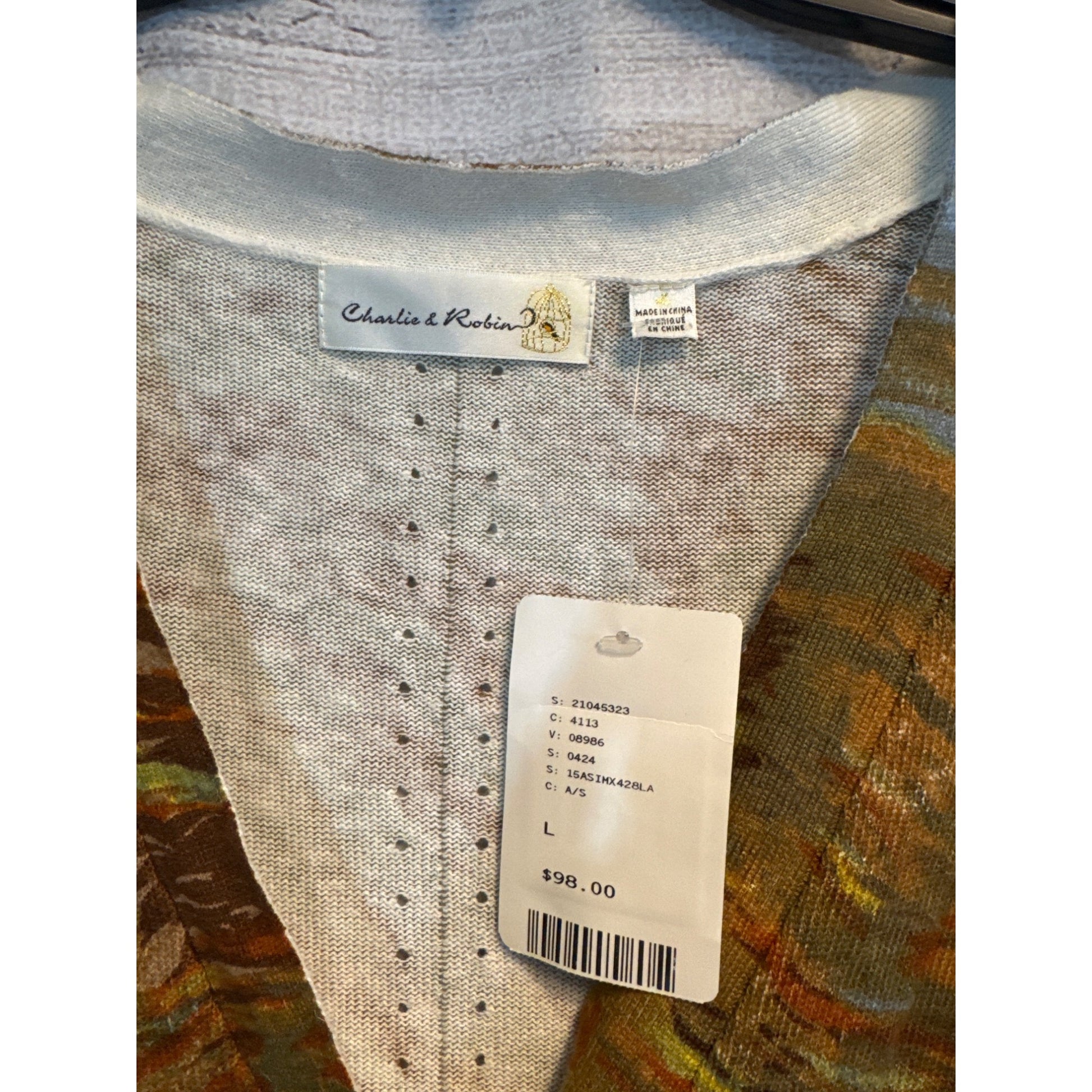NWT Charlie & Robin Anthropolgie Multicolor Abstract Patterned Cardigan Sweater Size L