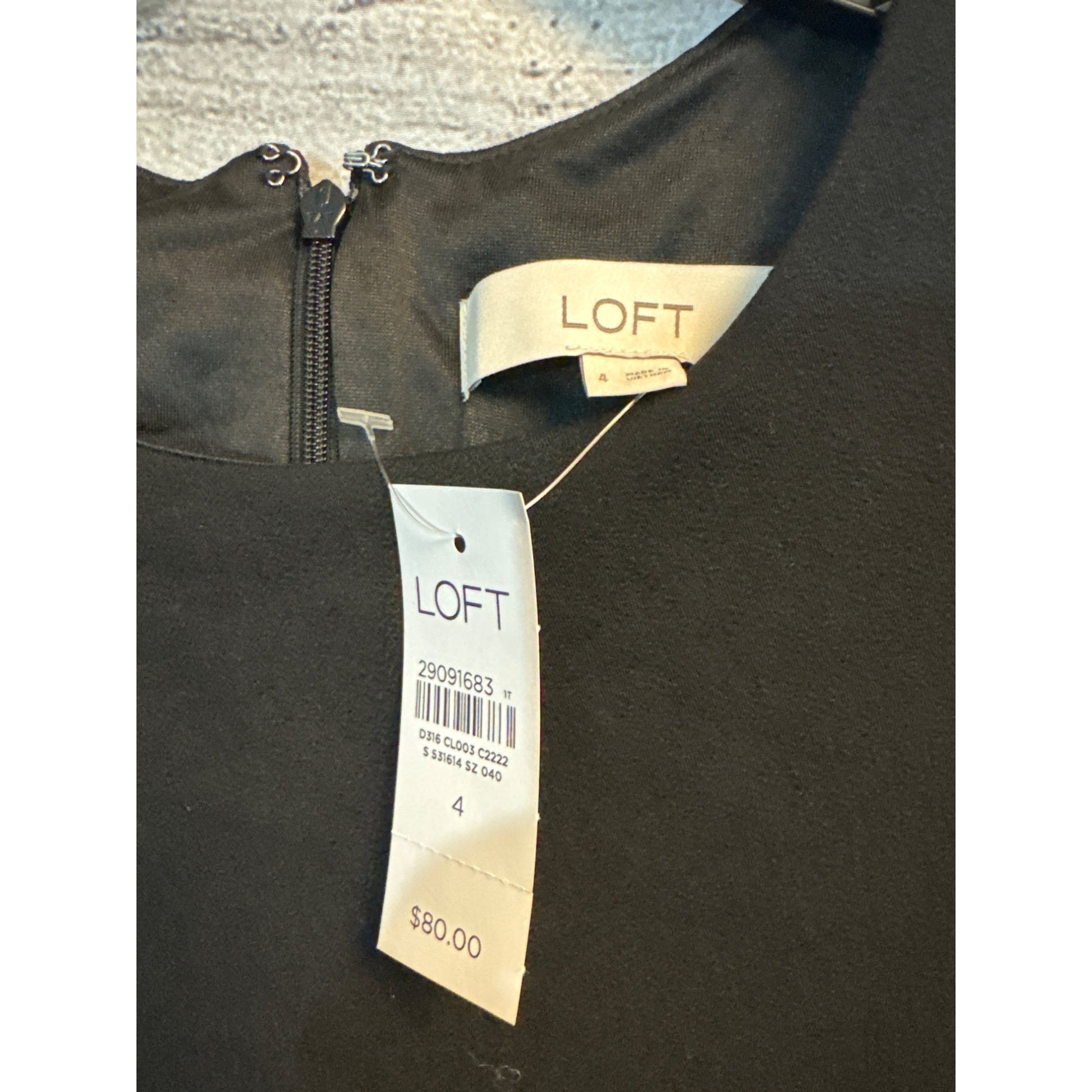 NWT Loft Black Short-Sleeve Ruched Dress With Back Zip Closure Size 4