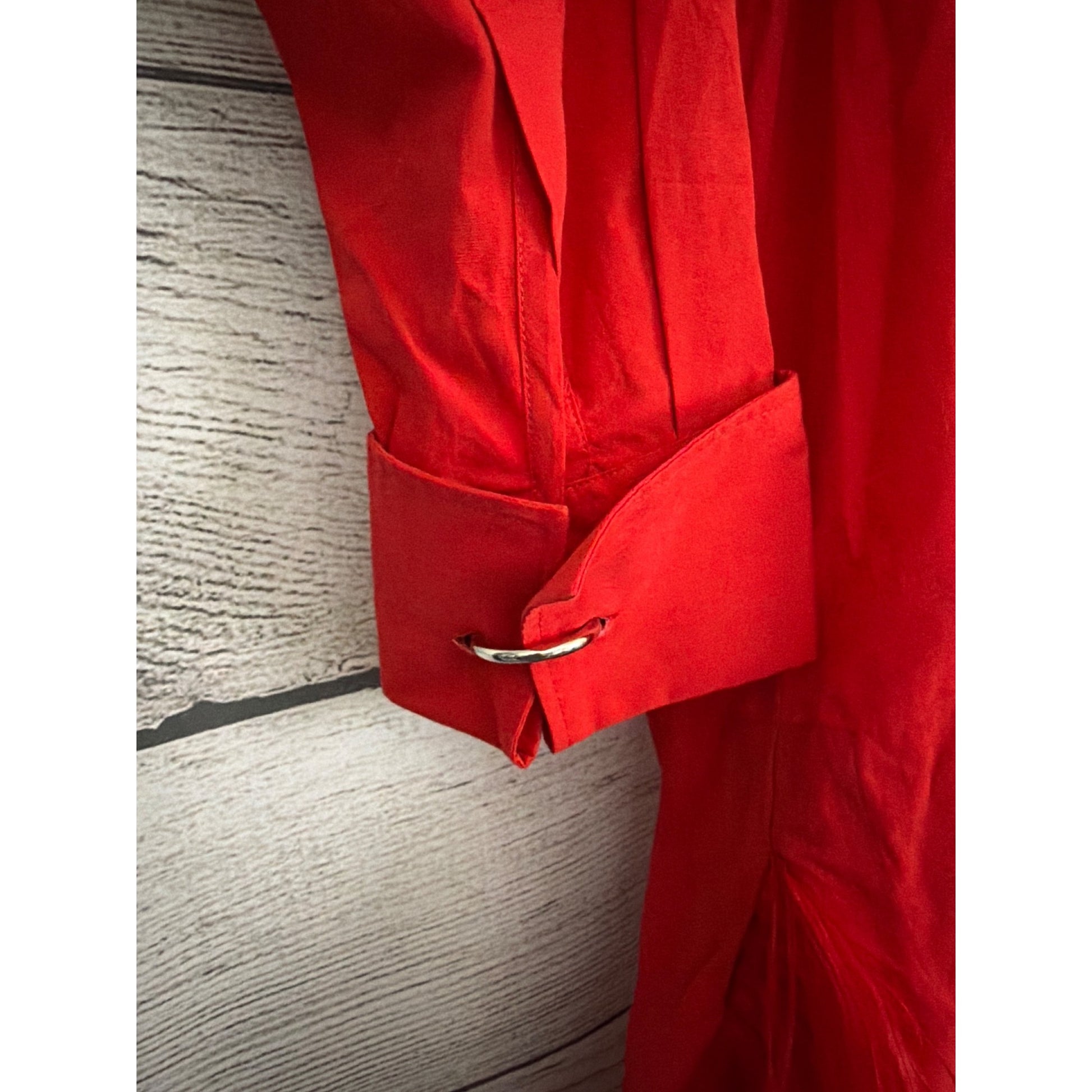 NWT Marques Almeida Organic Cotton Red Feather Hem Shirt Dress Size 8