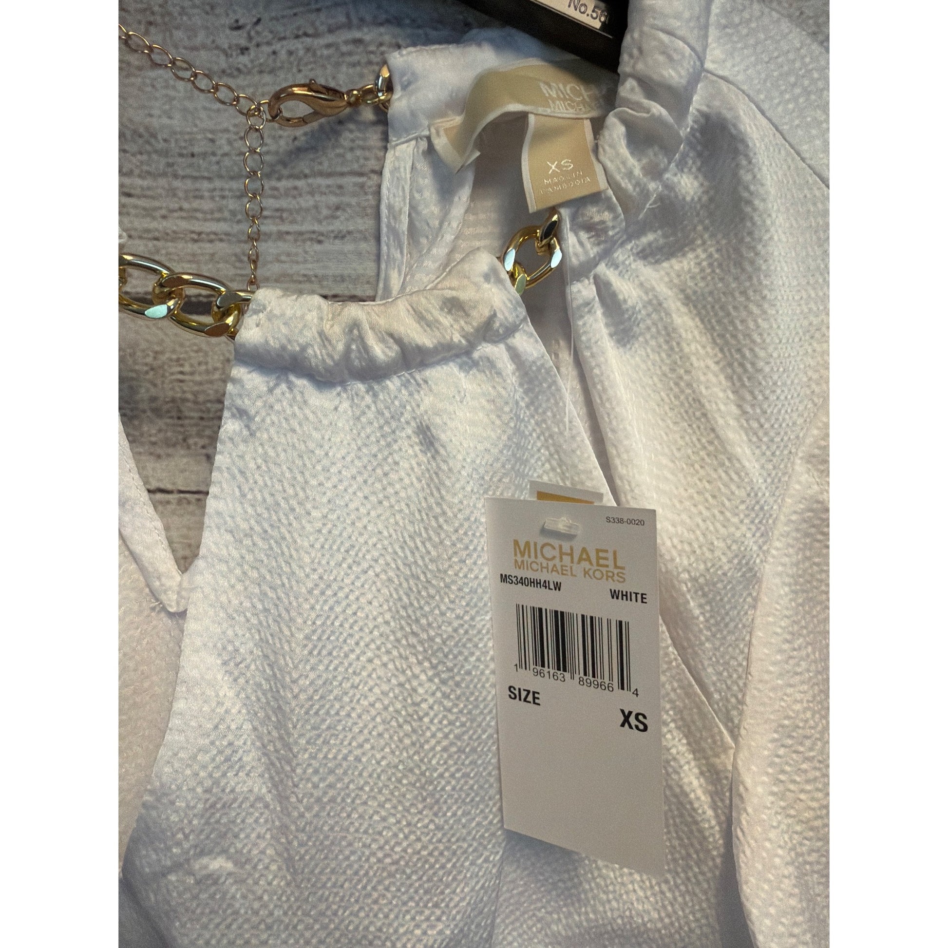 NWT Michael Kors Chain-Link Cutout Hammered Satin Blouse Size XS