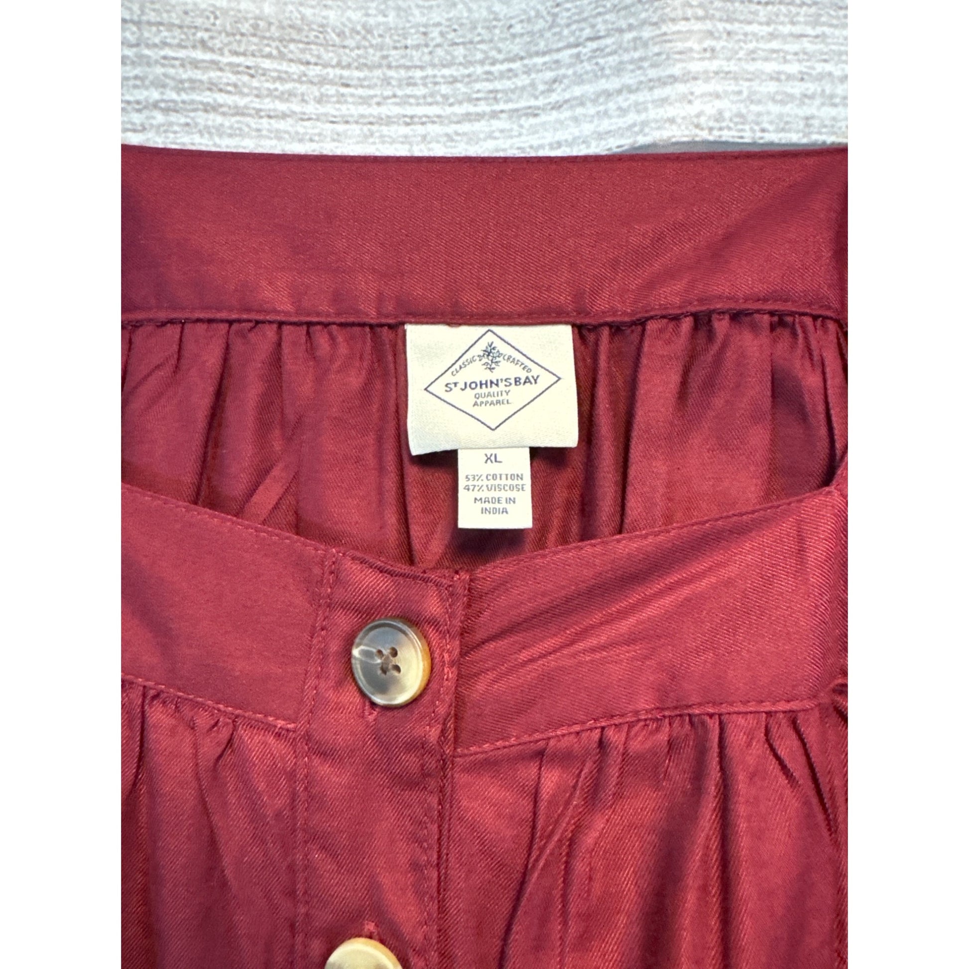 This burgundy peasant top from St. John's Bay is a fashion gem. Its flowy fit and button-down design elevate your comfort and style game.