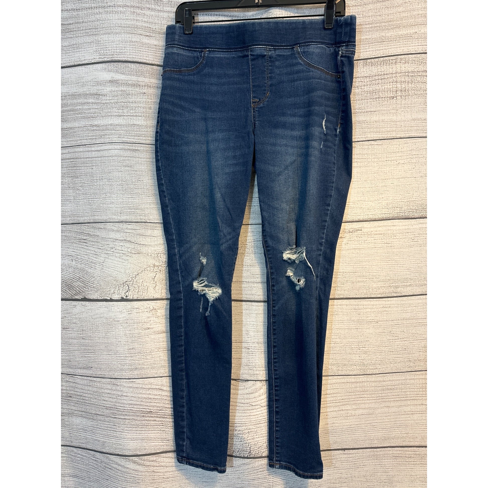 Front distressing adds character. Waist to bottom = 38 inches.