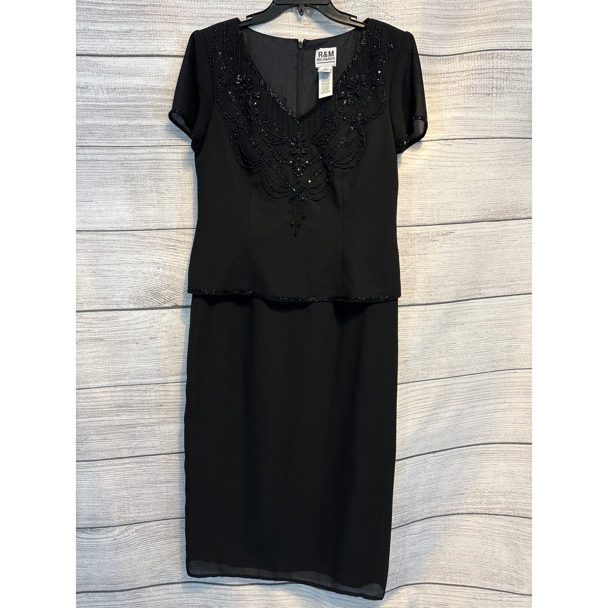 R&M Richards Beaded Black Dress With Sheer Sleeves Size 10