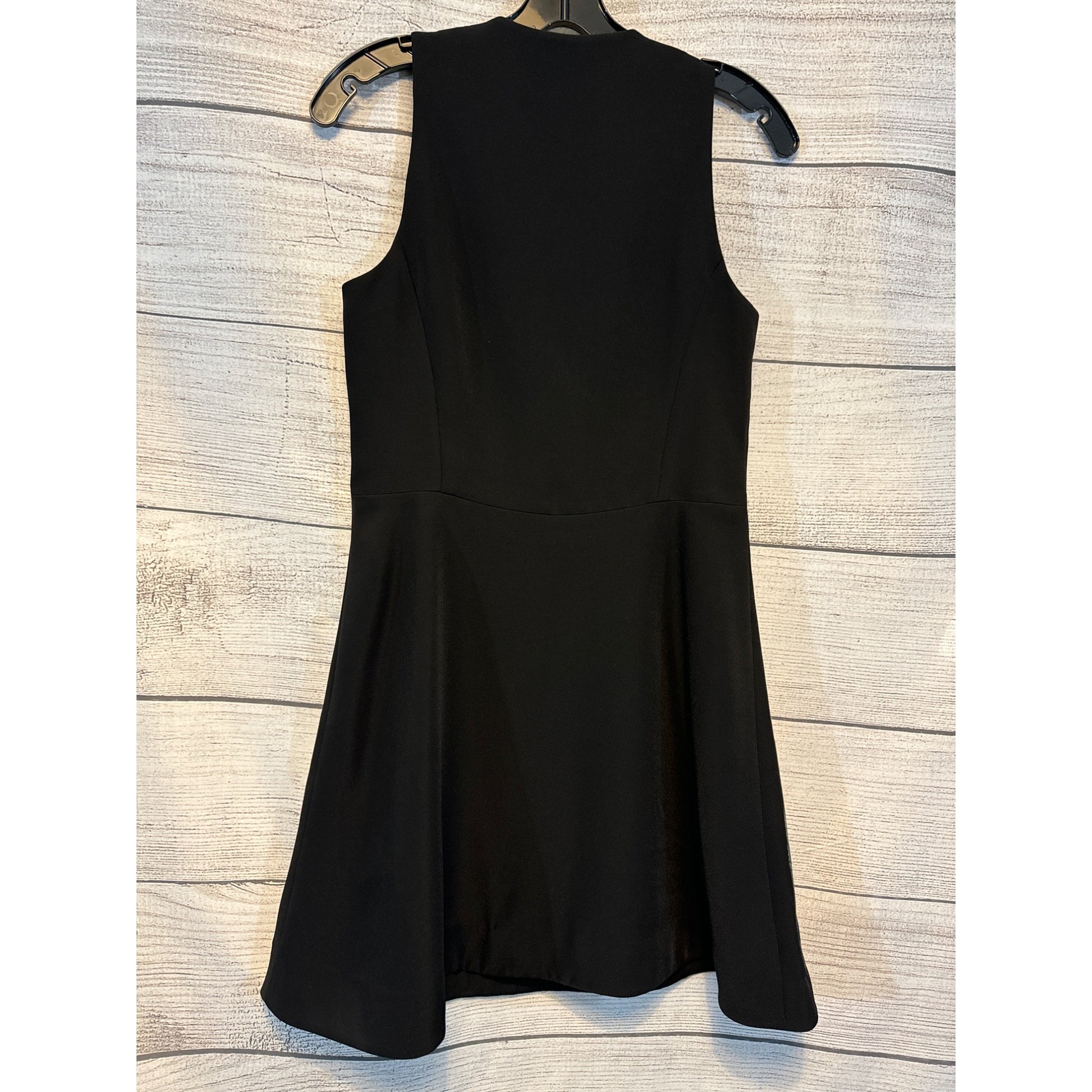 • Sleeveless design • Front zipper closure • Fit & flare silhouette • Abstract print on front • Solid black back • Knee-length style