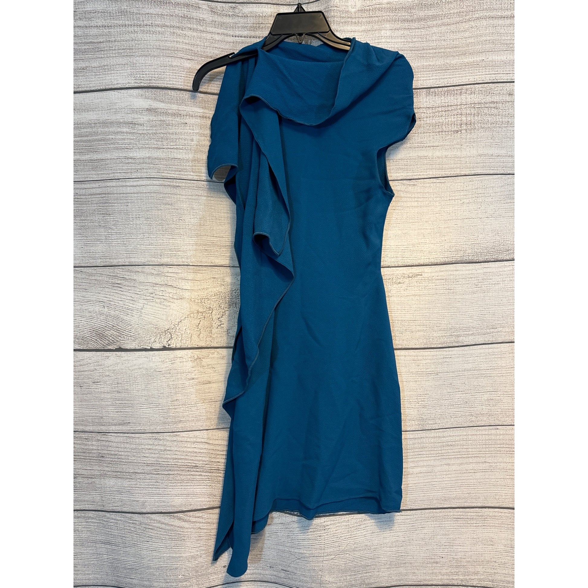 Roland Mouret Blue Draped Ruffle Sleeveless Dress UK 10 US 6