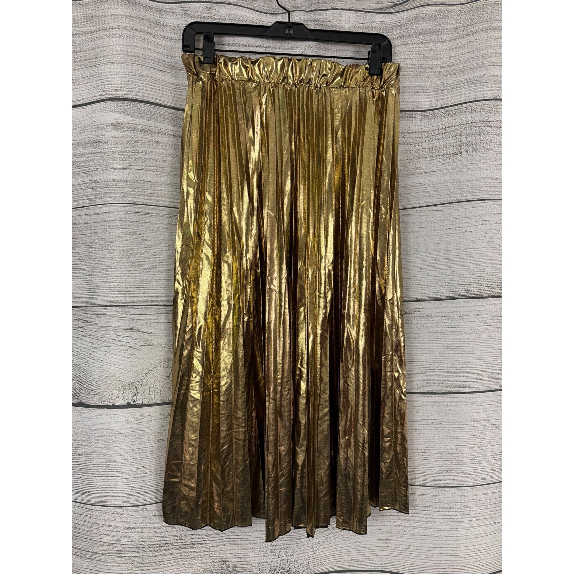 Sans Souci Gold Metallic Pleated Midi Skirt Size L