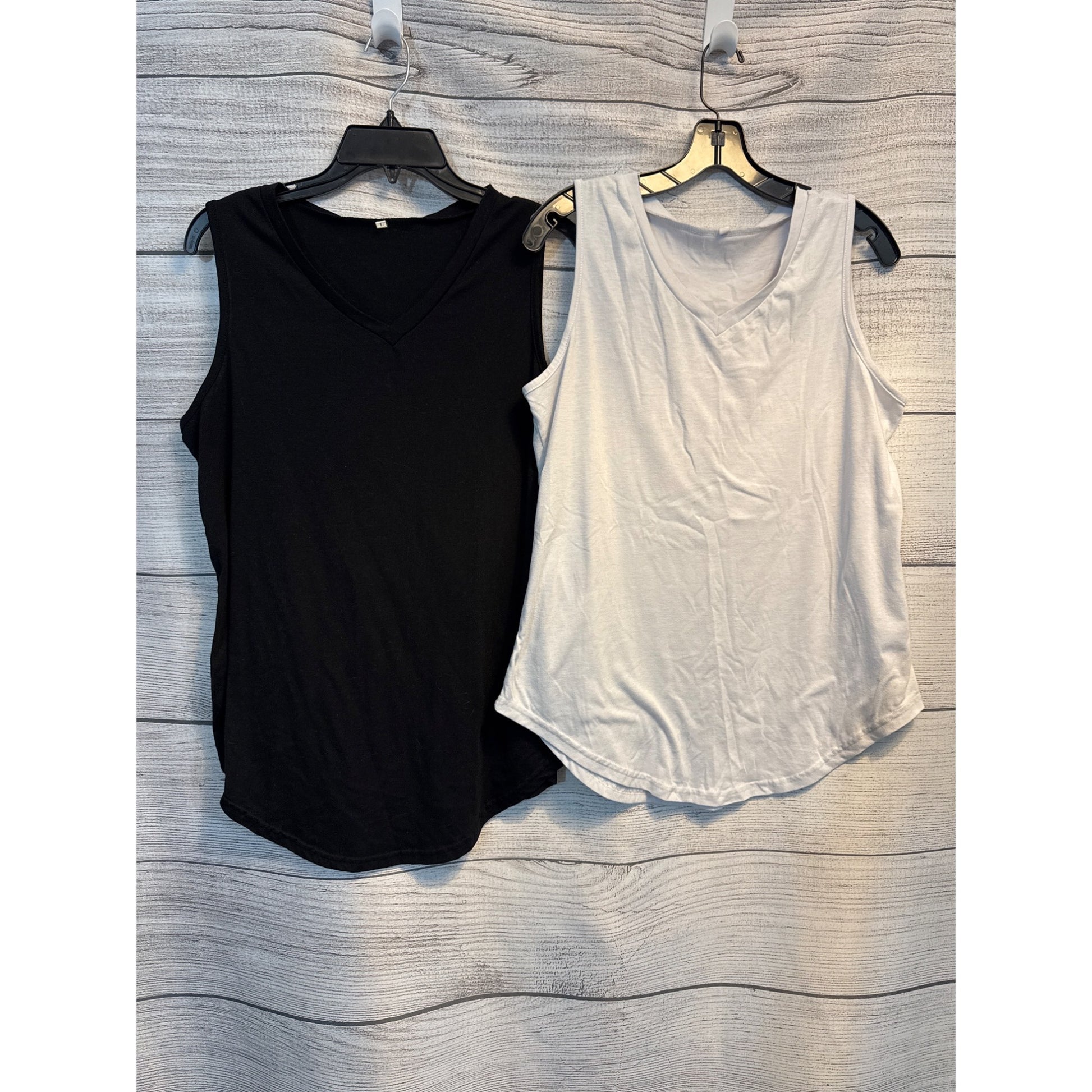 Set Of 2 Womens Sleeveless V-Neck Tops Black & White Size L