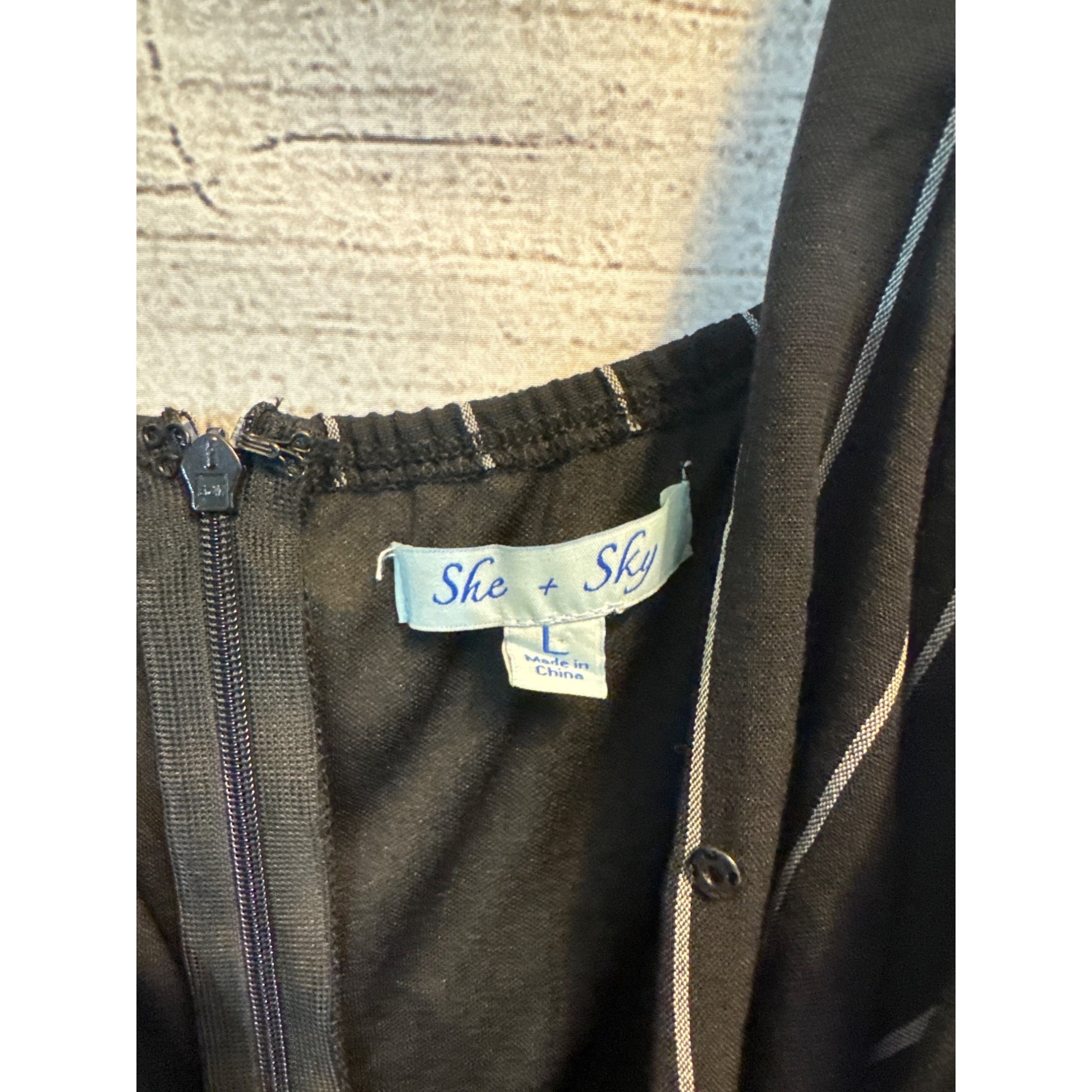 She + Sky Black & White Striped Wrap-Style Romper Size L