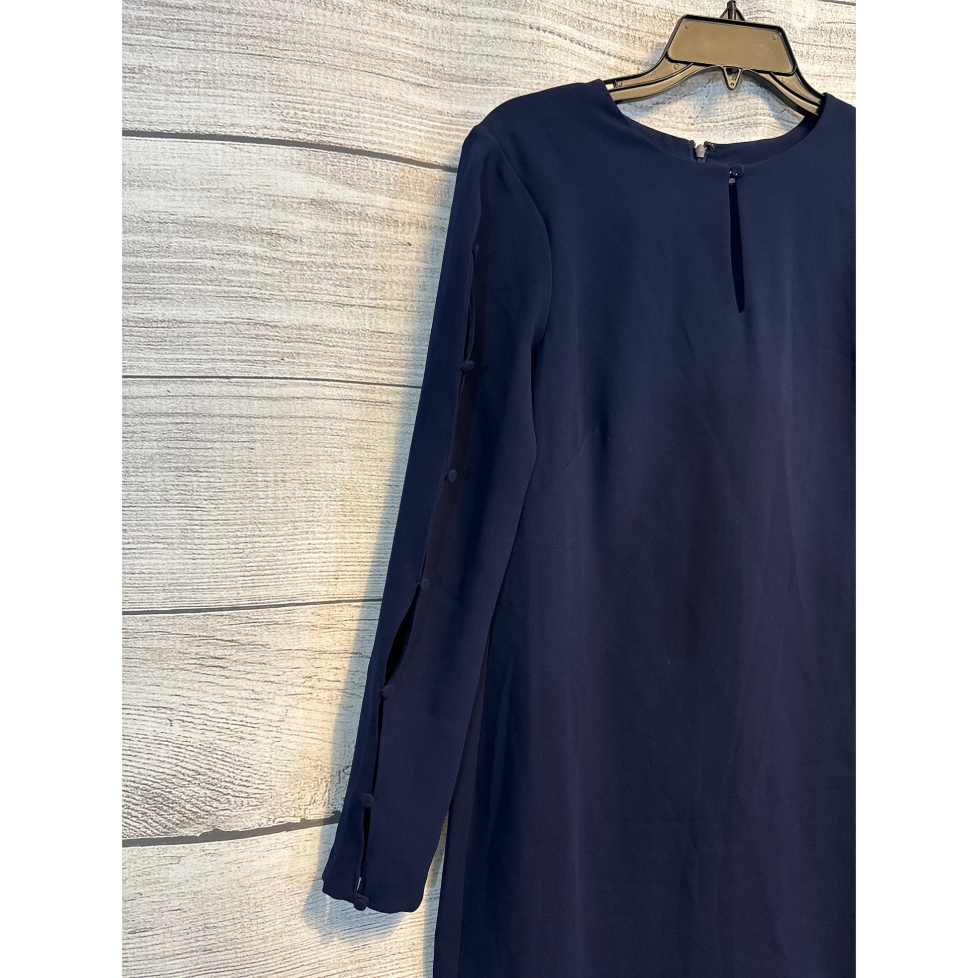 Shoshanna Navy Dress With Ruffled Hem & Buttoned Sleeves Size 6