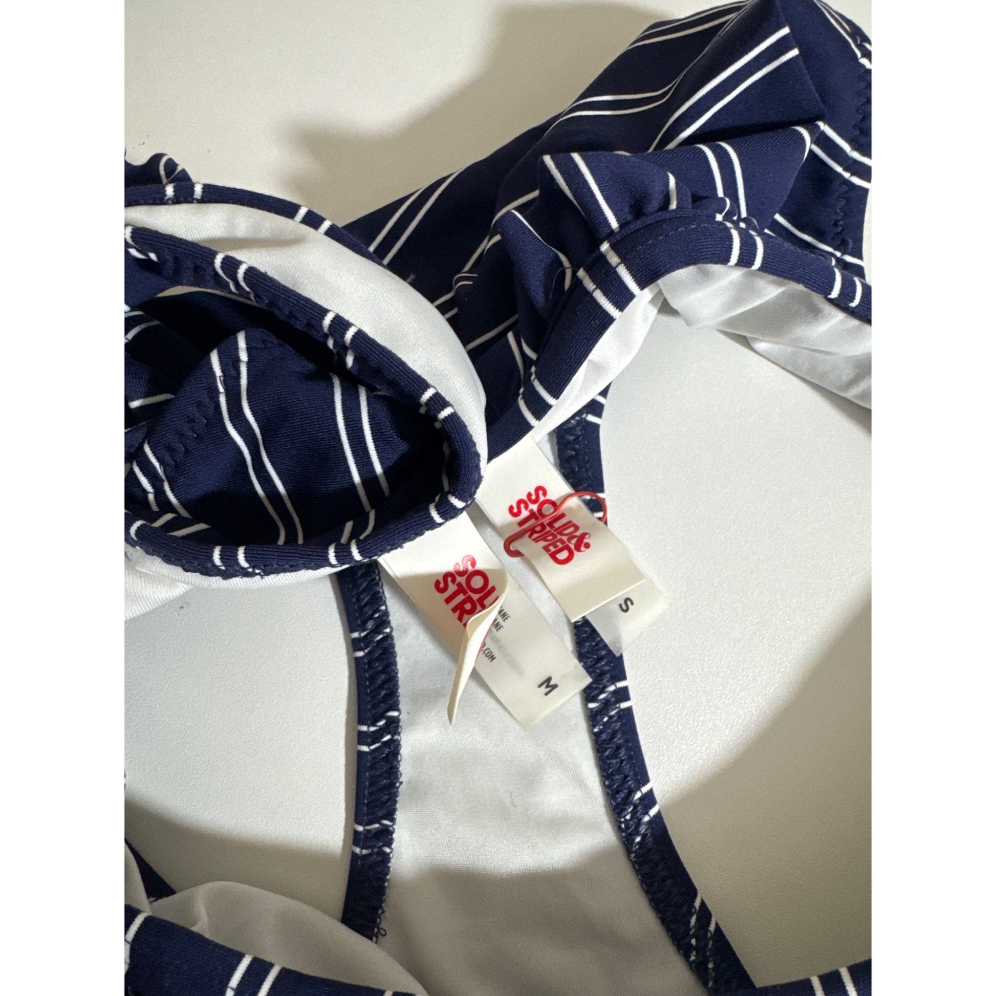 Solid and Striped Navy Blue White Striped Tie Front Bikini Swimsuit Size S/M
