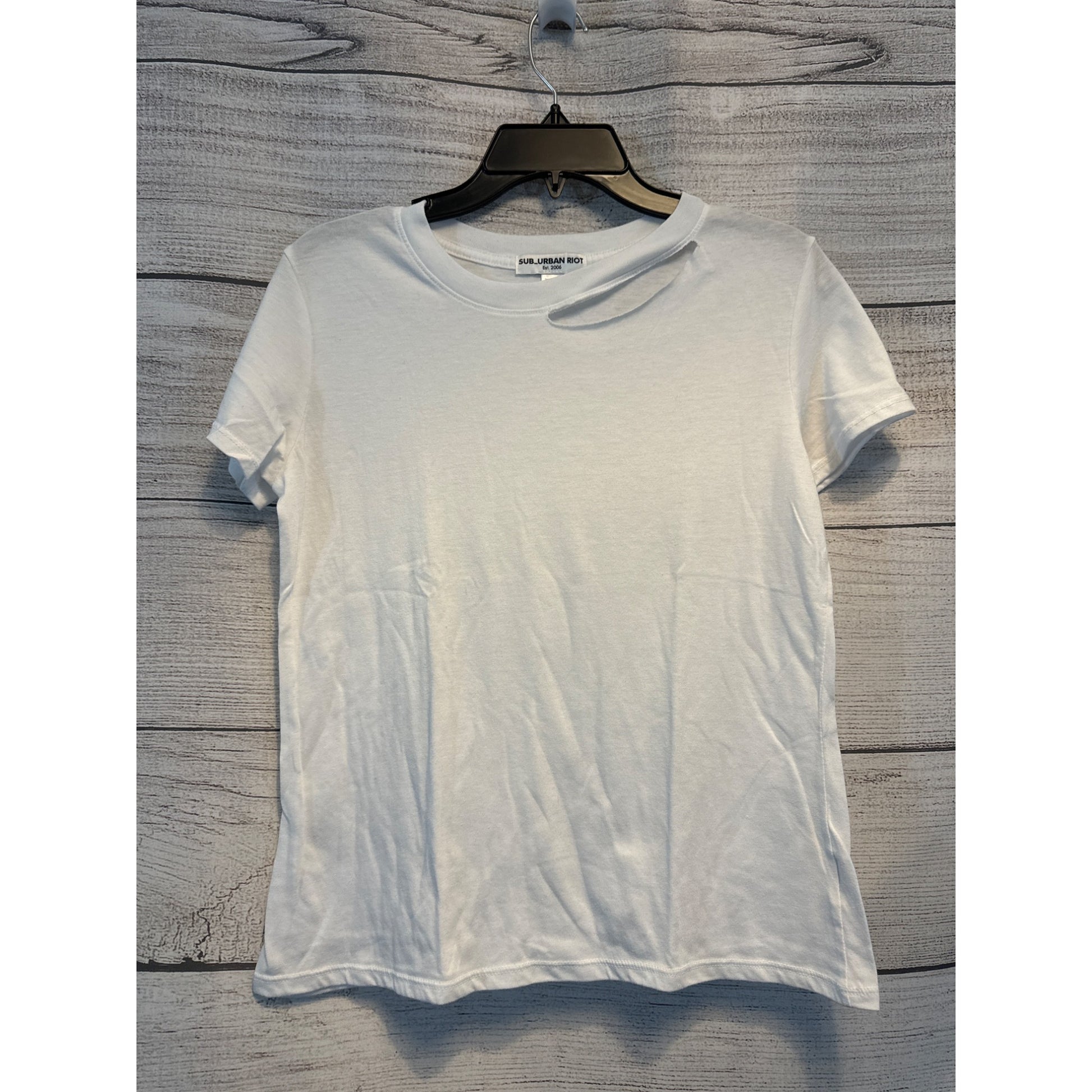 This Suburban Riot Distressed White T-shirt Size XS offers a casual yet stylish look. Perfect for everyday wear, the shirt has a comfortable, relaxed fit and a unique distressed design.