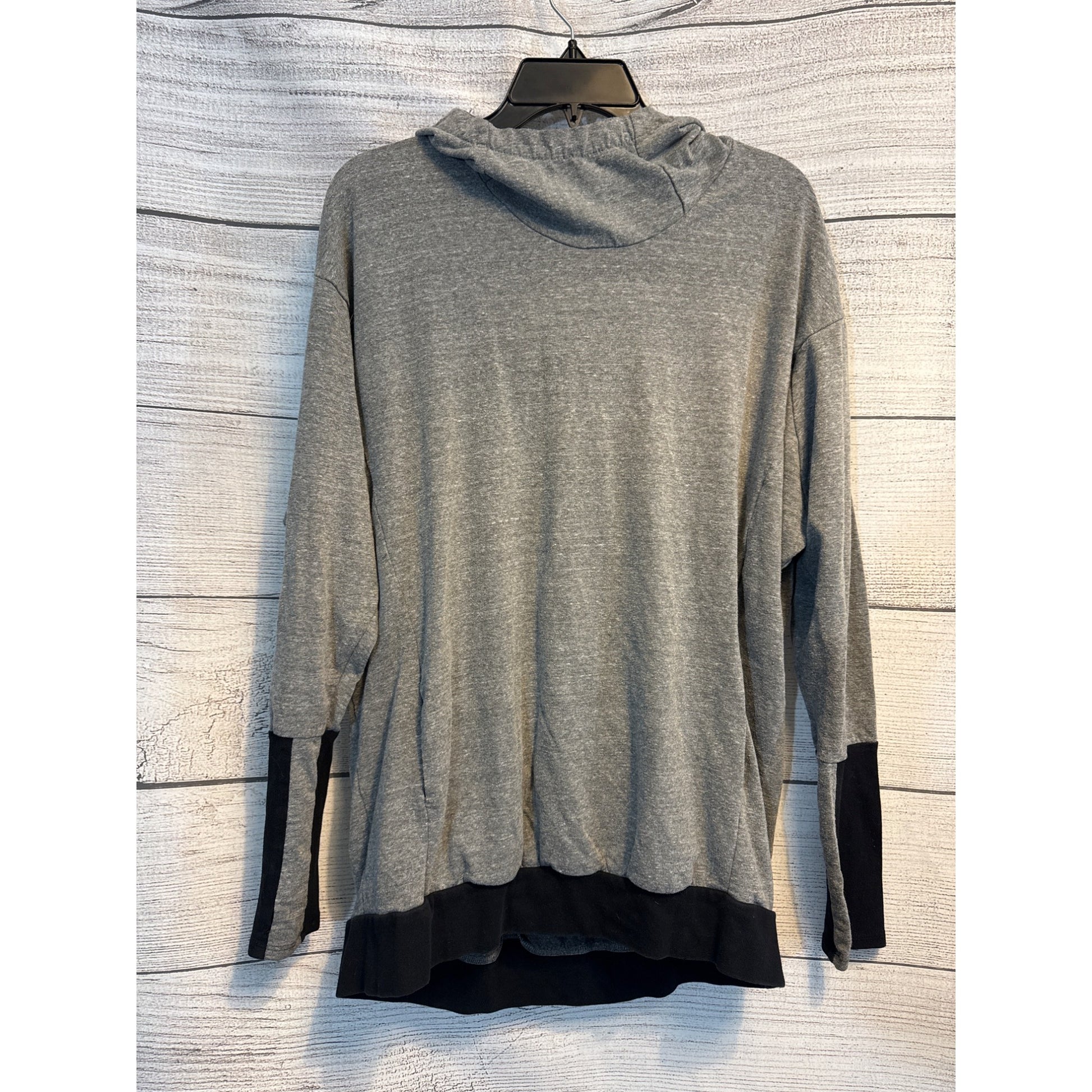 Terez Gray & Black Hooded Long-Sleeve Top Size L