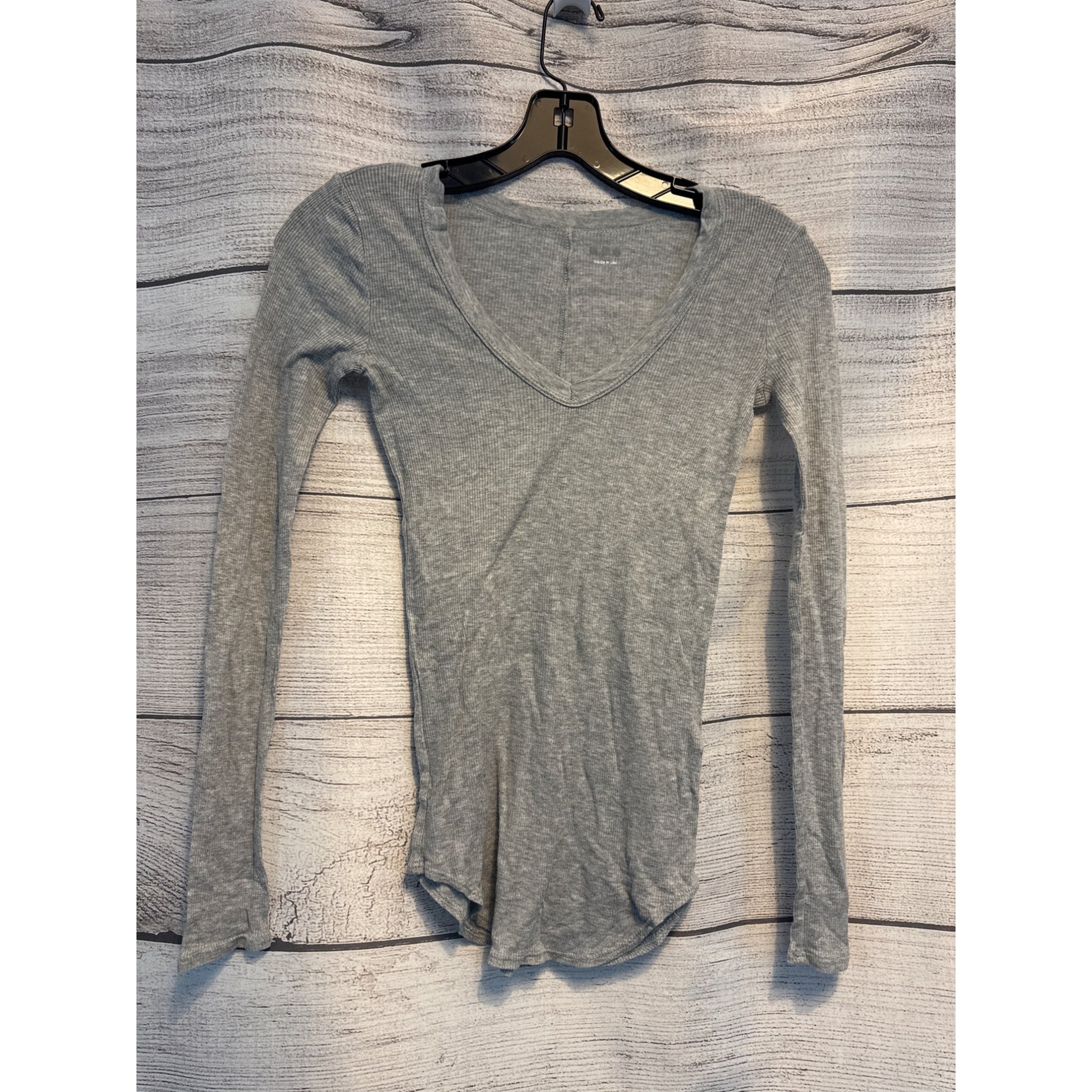 Three Dots Soft Gray Ribbed Long Sleeve Vneck Top Size XS