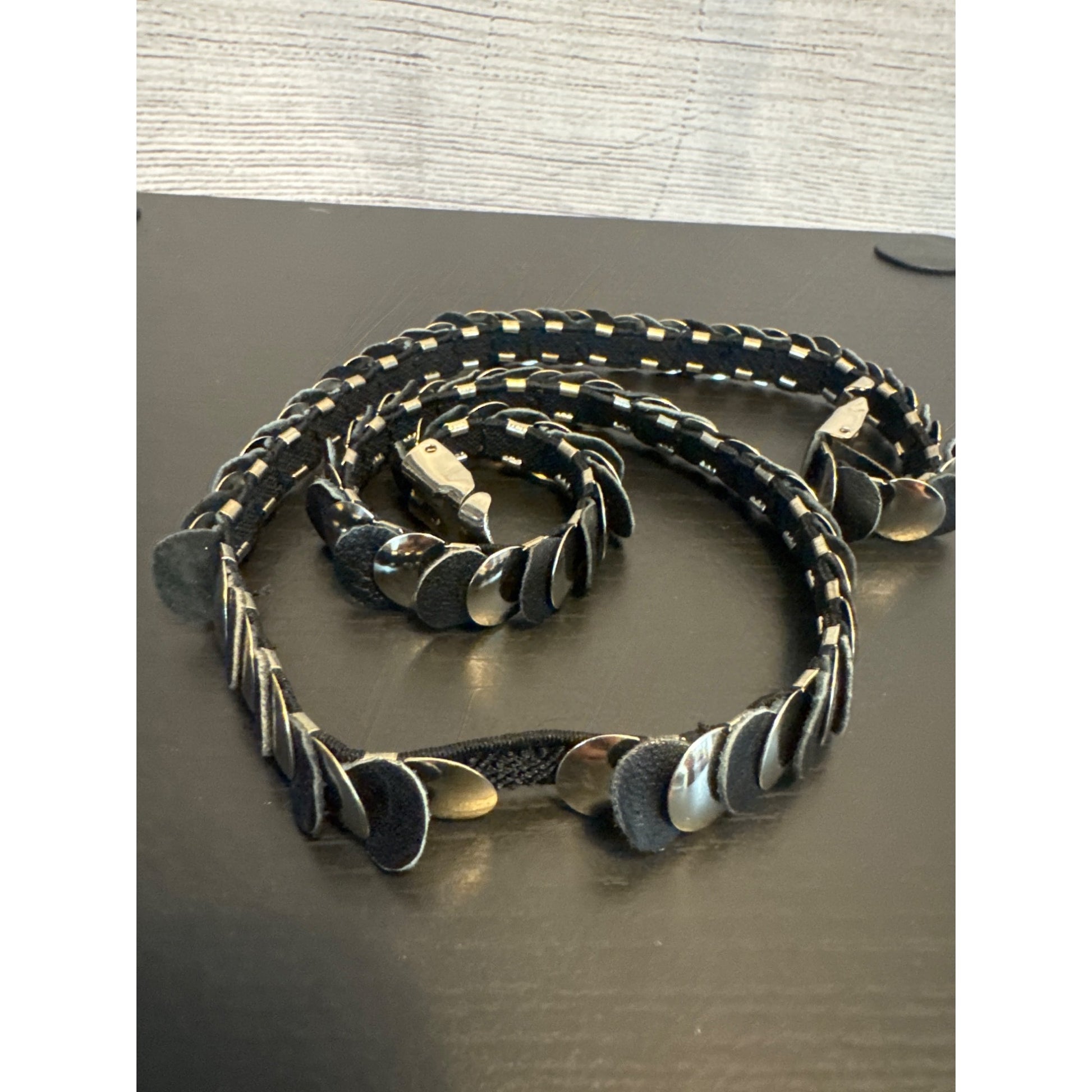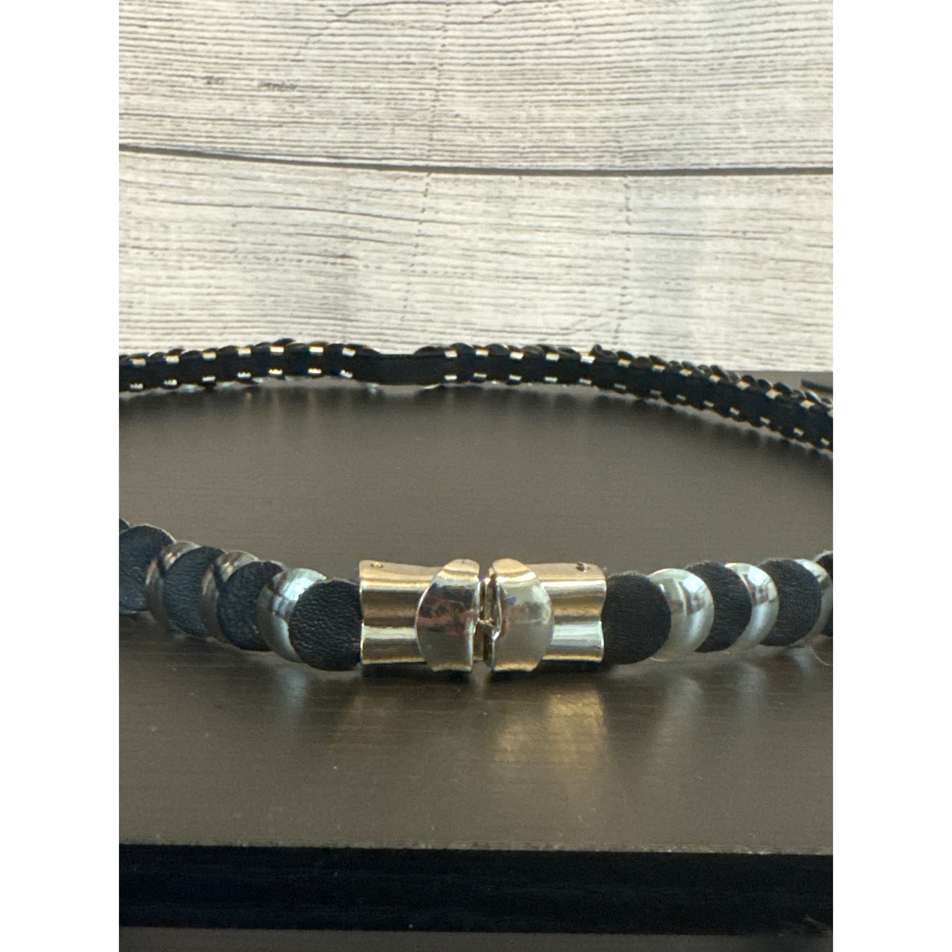 Vintage Silver & Black Leather Belt With Metal Discs & Clasp