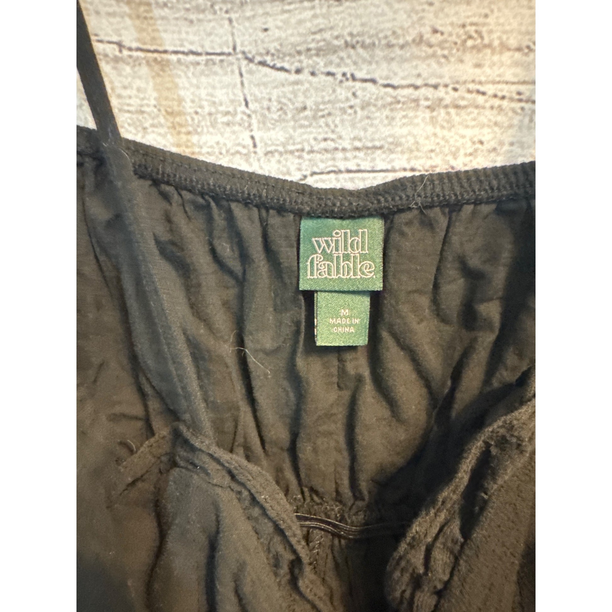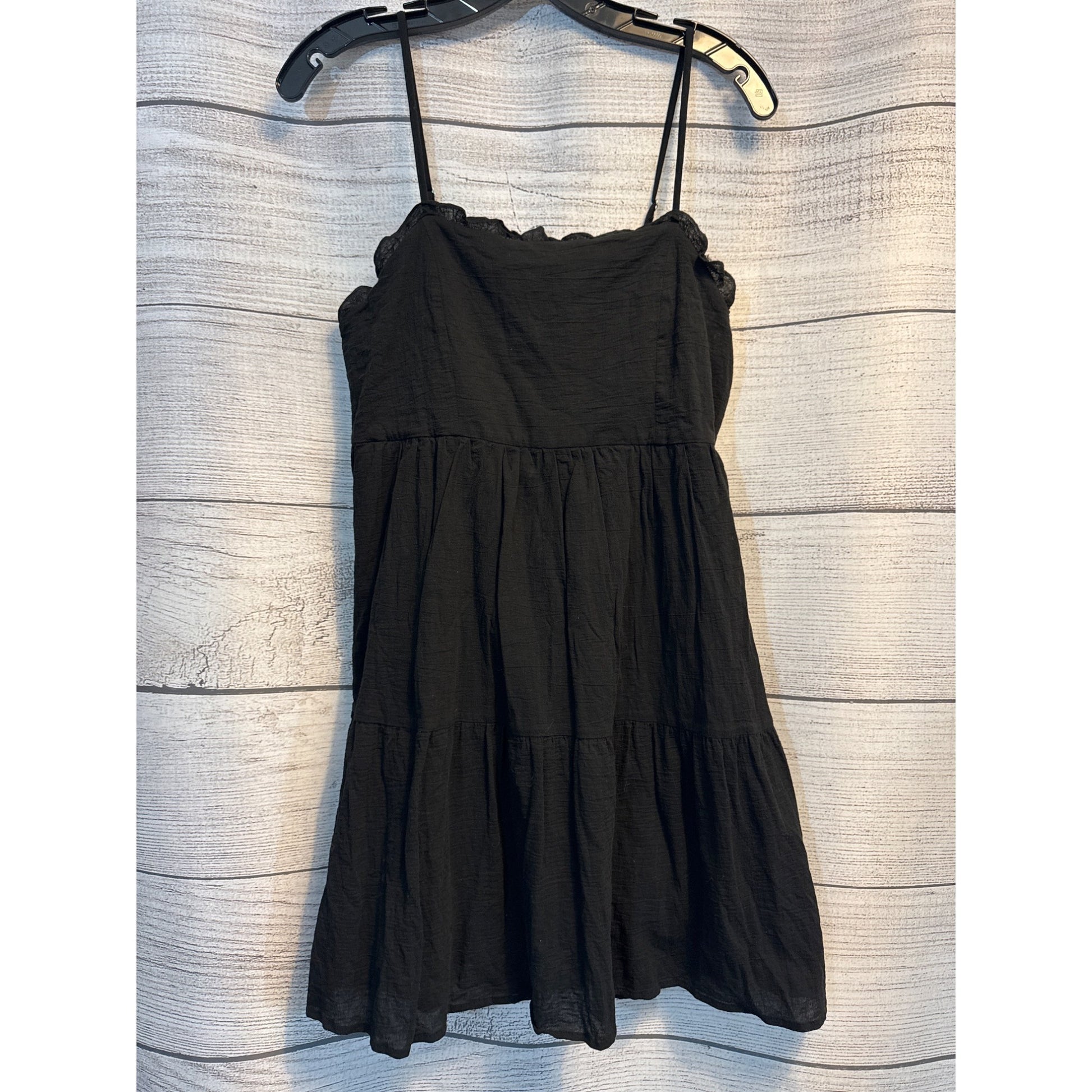 Wild Fable Black Cotton Tiered Mini Dress With Lace Trim Spaghetti Straps Size M